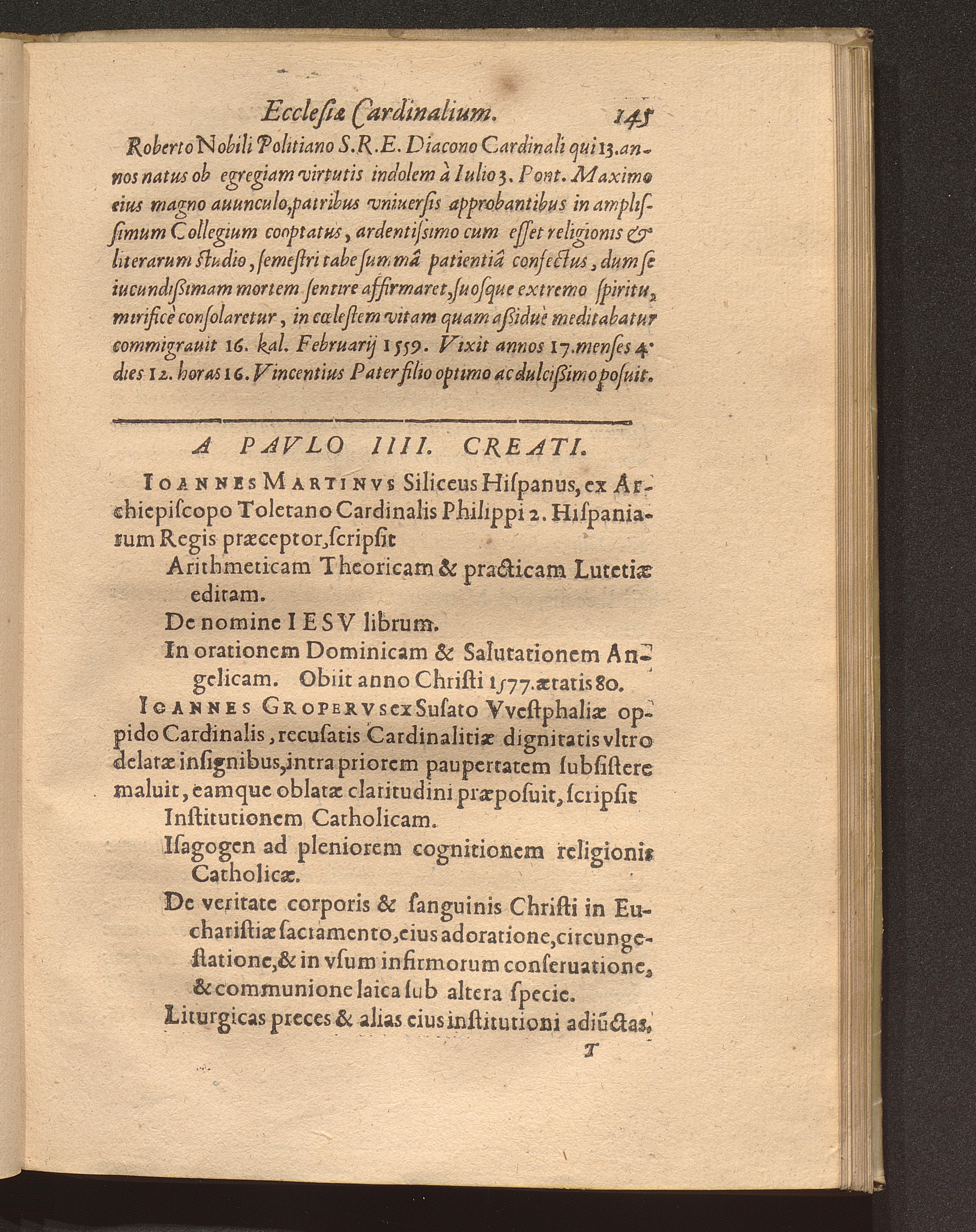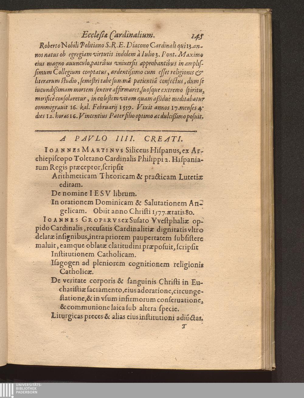 Nomenclator Sanctae Romanae Ecclesiae Cardinalivm Qvi Ab Anno Christi Millesimo quippiam commentati sunt, Sev Ab Eo Tempore quo Pontificis electione ad eos tantùm ob Romani cleri multitudinem reuocatâ, maximus illis honor (qualem videmus) haberi coeptus est : Accesserunt ad calcem Pontificum & Cardinalium Epitaphia supra ducenta, quae Alphonsi Ciaconi libro de Pontificum gestis appositè interseri operae est / [Verf.: Henri-Louis Chasteigner de la Rocheposay]