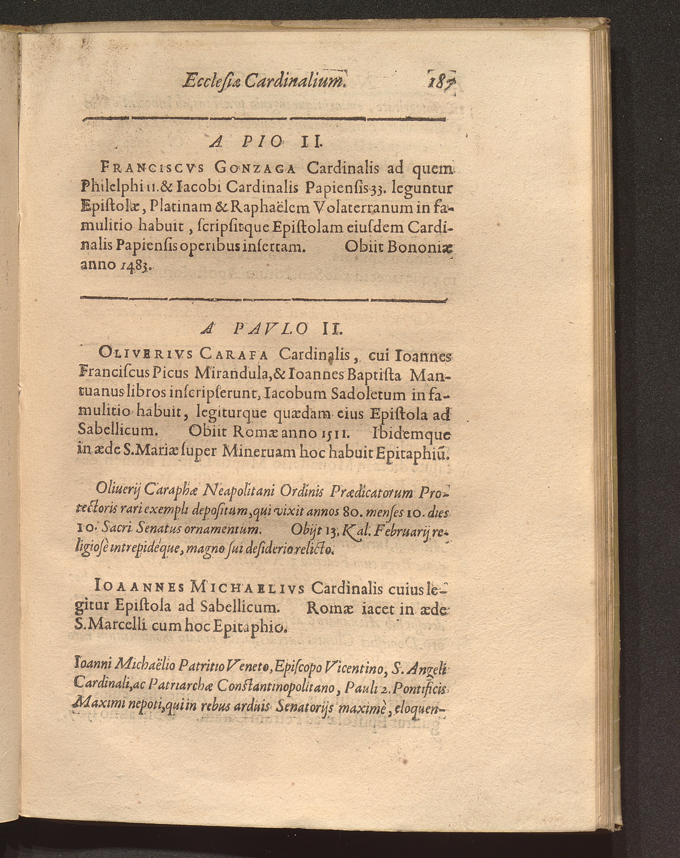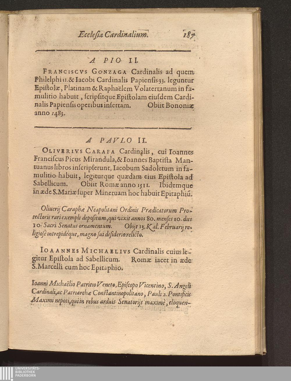 Nomenclator Sanctae Romanae Ecclesiae Cardinalivm Qvi Ab Anno Christi Millesimo quippiam commentati sunt, Sev Ab Eo Tempore quo Pontificis electione ad eos tantùm ob Romani cleri multitudinem reuocatâ, maximus illis honor (qualem videmus) haberi coeptus est : Accesserunt ad calcem Pontificum & Cardinalium Epitaphia supra ducenta, quae Alphonsi Ciaconi libro de Pontificum gestis appositè interseri operae est / [Verf.: Henri-Louis Chasteigner de la Rocheposay]