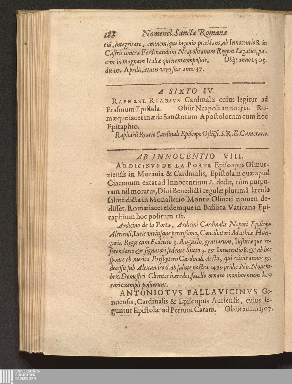 Nomenclator Sanctae Romanae Ecclesiae Cardinalivm Qvi Ab Anno Christi Millesimo quippiam commentati sunt, Sev Ab Eo Tempore quo Pontificis electione ad eos tantùm ob Romani cleri multitudinem reuocatâ, maximus illis honor (qualem videmus) haberi coeptus est : Accesserunt ad calcem Pontificum & Cardinalium Epitaphia supra ducenta, quae Alphonsi Ciaconi libro de Pontificum gestis appositè interseri operae est / [Verf.: Henri-Louis Chasteigner de la Rocheposay]
