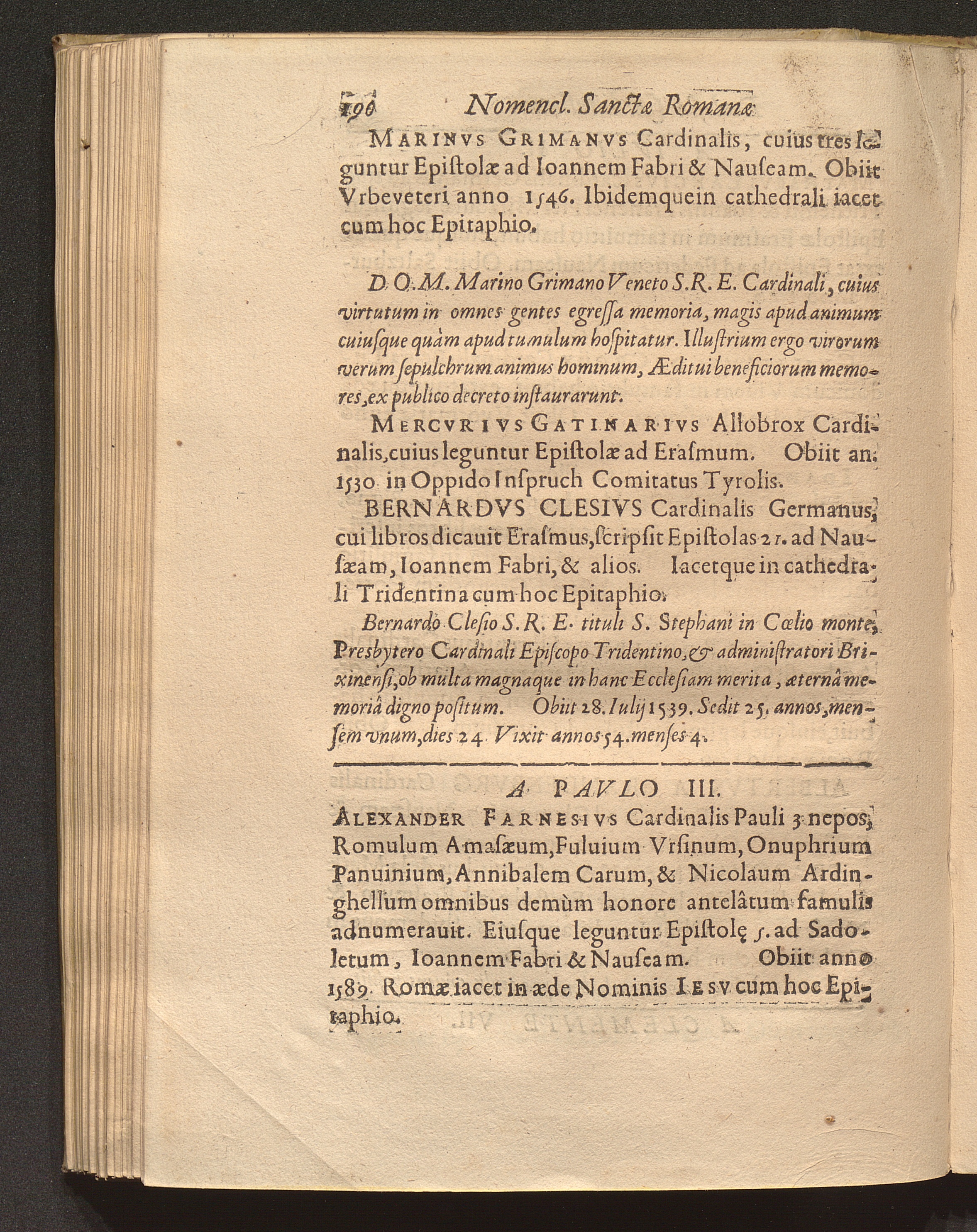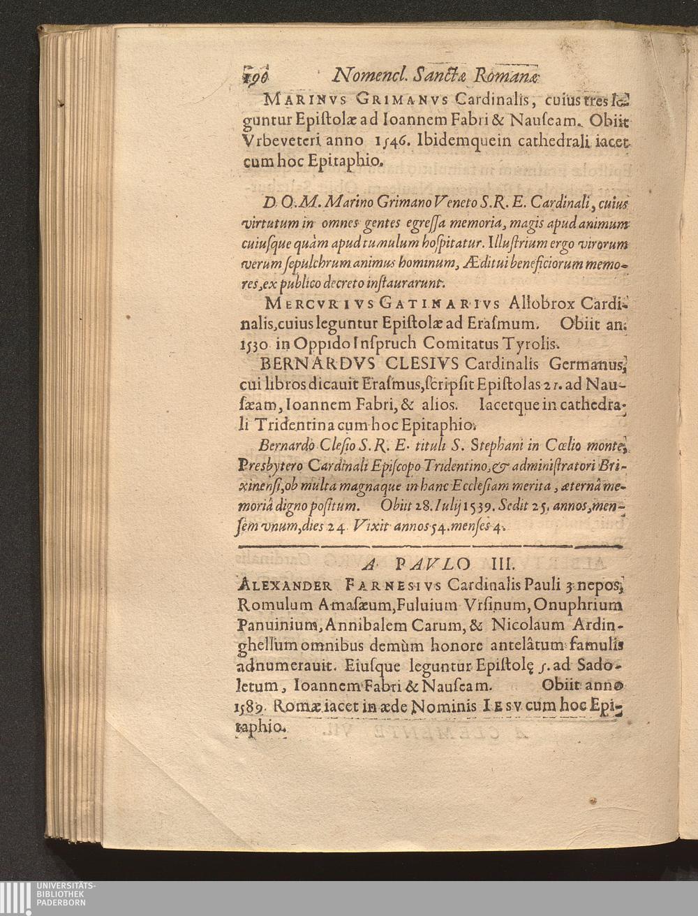 Nomenclator Sanctae Romanae Ecclesiae Cardinalivm Qvi Ab Anno Christi Millesimo quippiam commentati sunt, Sev Ab Eo Tempore quo Pontificis electione ad eos tantùm ob Romani cleri multitudinem reuocatâ, maximus illis honor (qualem videmus) haberi coeptus est : Accesserunt ad calcem Pontificum & Cardinalium Epitaphia supra ducenta, quae Alphonsi Ciaconi libro de Pontificum gestis appositè interseri operae est / [Verf.: Henri-Louis Chasteigner de la Rocheposay]