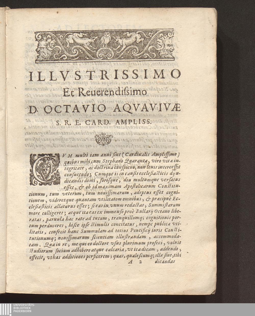 Svmma Bvllarii Earvmve Svmmorvm Pontificvm Constitvtionvm Qvae Ad Commvnem Ecclesiae Vsvm post volumina Iuris Canonicis, vsq[ue] ad Sanctissimum D. N. D. Pavlvm Papam V. emanarunt : Et vltra proximioris editionis Constitutiones Apostolicas, & Additiones denuo adauctas, in hac postrema appositae sunt ipsiusmet Auctoris aliae quam plures, quae amplius non desiderantur ... Accesserunt etiam quatuor Tractatus Canonici, necnon extrauagantium communium Liber Sextus, & alia prout versa pagina indicabit / Avthore Stephano Qvaranta I. V. D. Canonico, & Iudice Synodali Neapolitano, cum Adnotationibus, & Additionibus eiusdem ... vnà cum Additionibus Prosperi de Avgvstino I. V. D. Presbyteri Neapolitani