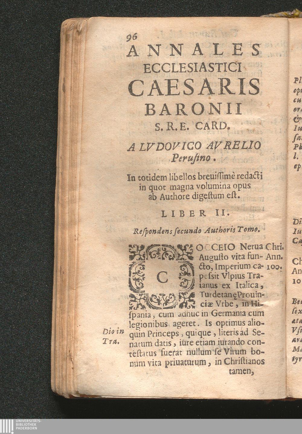 Annales Ecclesiastici Caesaris Baronii S.R.E. Card. A Lvdovico Avrelio Perusino. In totidem libellos breuissimè redacti in quot magna volumina opus ab Authore digestum est. Liber II.