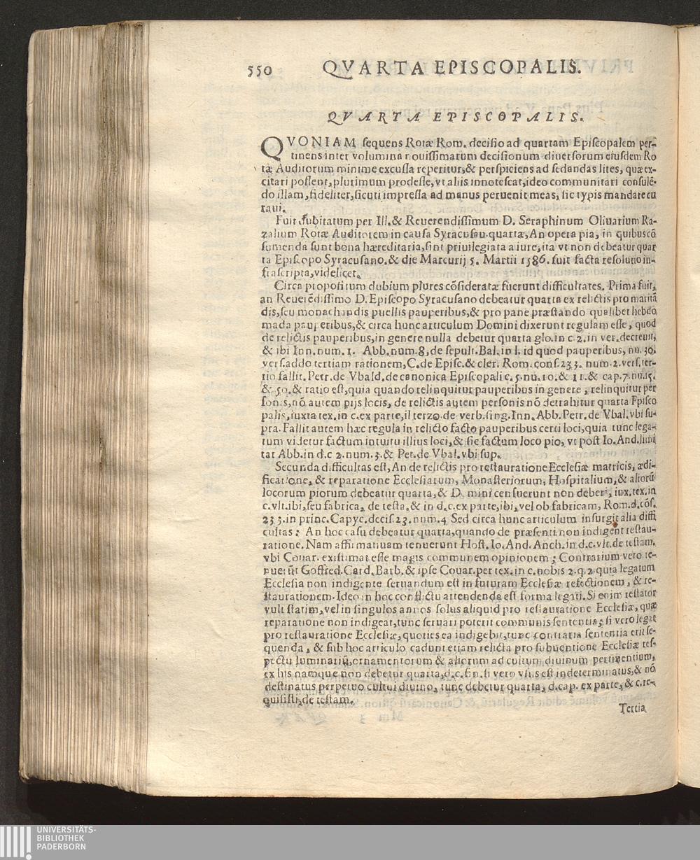 Svmma Bvllarii Earvmve Svmmorvm Pontificvm Constitvtionvm Qvae Ad Commvnem Ecclesiae Vsvm post volumina Iuris Canonicis, vsq[ue] ad Sanctissimum D. N. D. Pavlvm Papam V. emanarunt : Et vltra proximioris editionis Constitutiones Apostolicas, & Additiones denuo adauctas, in hac postrema appositae sunt ipsiusmet Auctoris aliae quam plures, quae amplius non desiderantur ... Accesserunt etiam quatuor Tractatus Canonici, necnon extrauagantium communium Liber Sextus, & alia prout versa pagina indicabit / Avthore Stephano Qvaranta I. V. D. Canonico, & Iudice Synodali Neapolitano, cum Adnotationibus, & Additionibus eiusdem ... vnà cum Additionibus Prosperi de Avgvstino I. V. D. Presbyteri Neapolitani