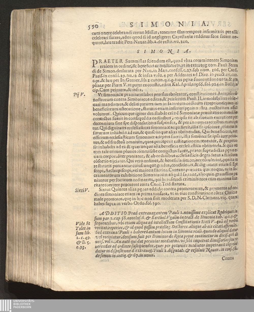 Svmma Bvllarii Earvmve Svmmorvm Pontificvm Constitvtionvm Qvae Ad Commvnem Ecclesiae Vsvm post volumina Iuris Canonicis, vsq[ue] ad Sanctissimum D. N. D. Pavlvm Papam V. emanarunt : Et vltra proximioris editionis Constitutiones Apostolicas, & Additiones denuo adauctas, in hac postrema appositae sunt ipsiusmet Auctoris aliae quam plures, quae amplius non desiderantur ... Accesserunt etiam quatuor Tractatus Canonici, necnon extrauagantium communium Liber Sextus, & alia prout versa pagina indicabit / Avthore Stephano Qvaranta I. V. D. Canonico, & Iudice Synodali Neapolitano, cum Adnotationibus, & Additionibus eiusdem ... vnà cum Additionibus Prosperi de Avgvstino I. V. D. Presbyteri Neapolitani