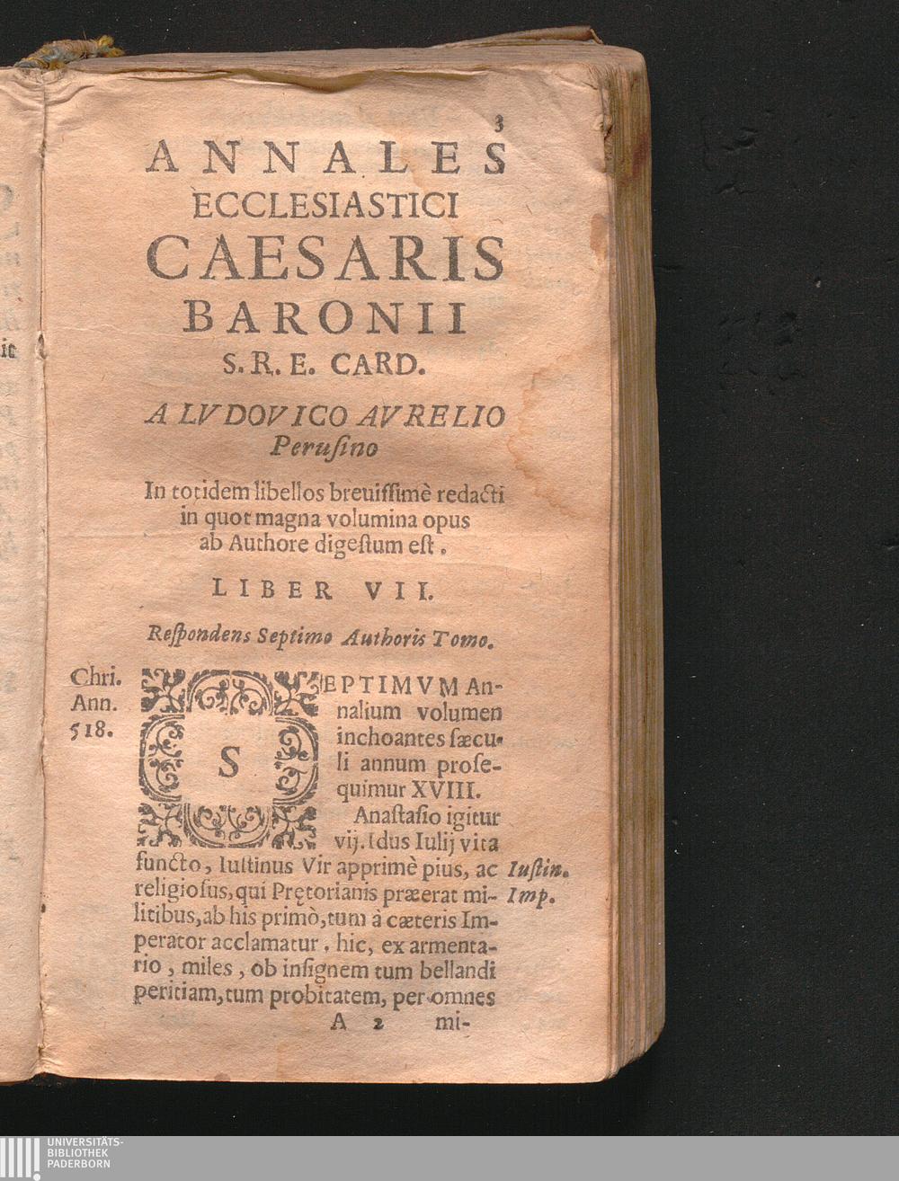 Annales Ecclesiastici Caesaris Baronii S. R. E. Card. A Lvdovico Avrelio Perusino In totidem libellos breuissimè redacti in quot magna volumina opus ab Authore digestum est. Liber VII.
