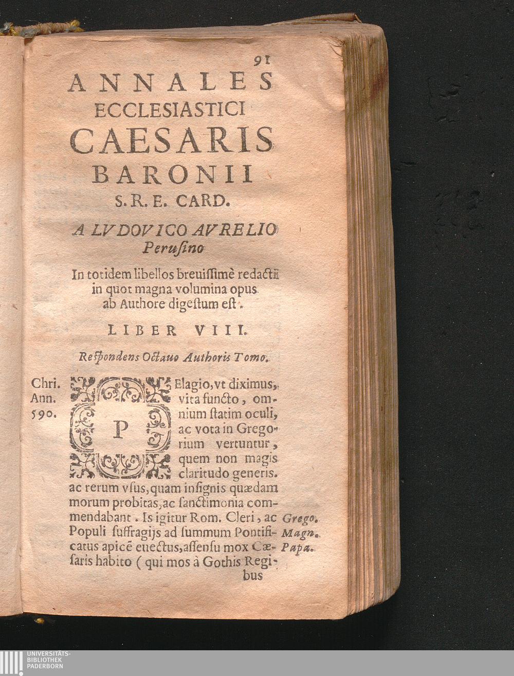Annales Ecclesiastici Caesaris Baronii S. R. E. Card. A Lvdovico Avrelio Perusino In totidem libellos breuissimè redacti in quot magna volumina opus ab Authore digestum est. Liber VIII.