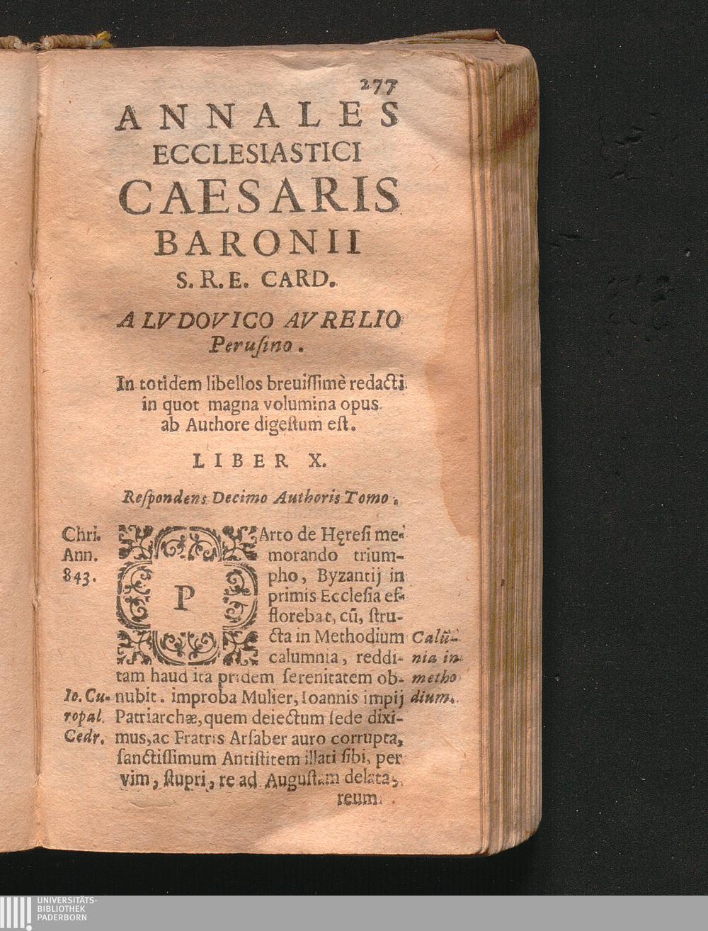 Annales Ecclesiastici Caesaris Baronii S. R. E. Card. A Lvdovico Avrelio Perusino. In totidem libellos breuissimè redacti in quot magna volumina opus ab Authore digestum est. Liber X.