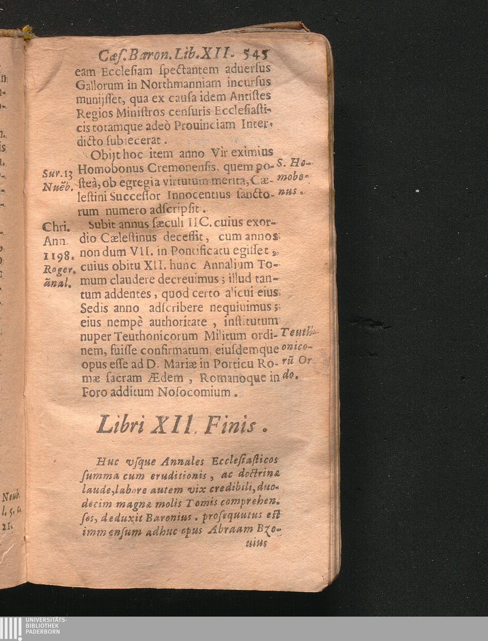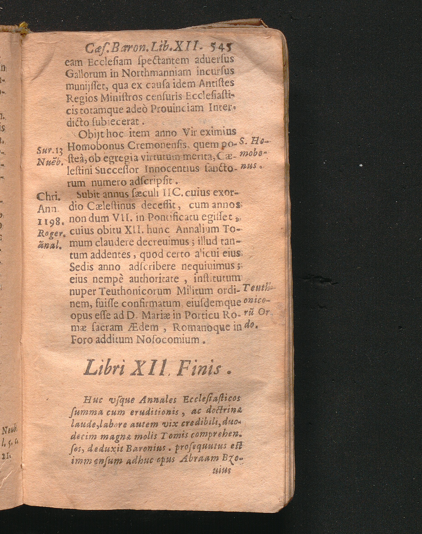 Annales Ecclesiastici Caesaris Baronii S. R. E. Card. A Lvdovico Avrelio Perusino. In totidem libellos breuissimè redacti in quot magna volumina opus ab Authore digestum est. Liber XII.