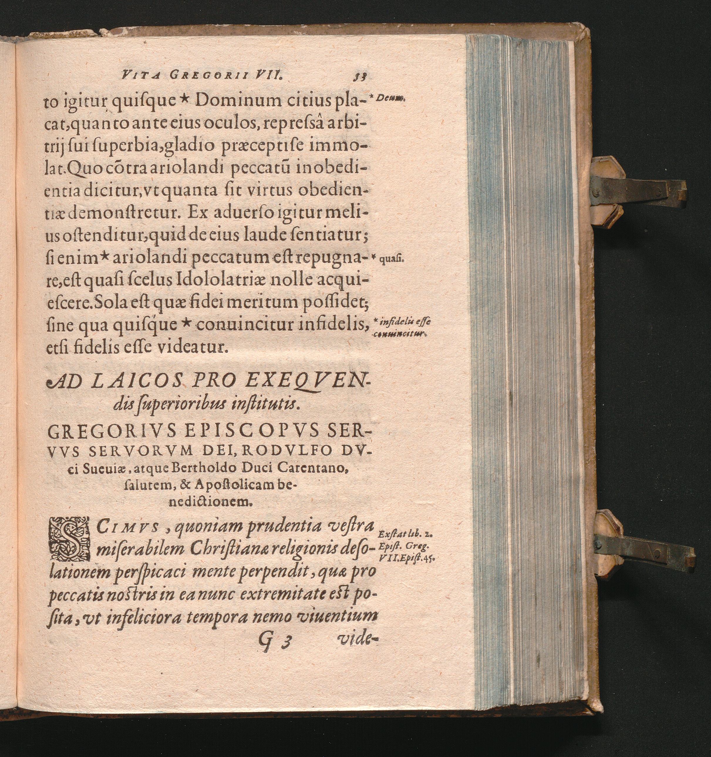 Ad Laicos Pro Exeqvendis superioribus institutis. Gregorivs Episcopvs Servvs Servorvm[...]