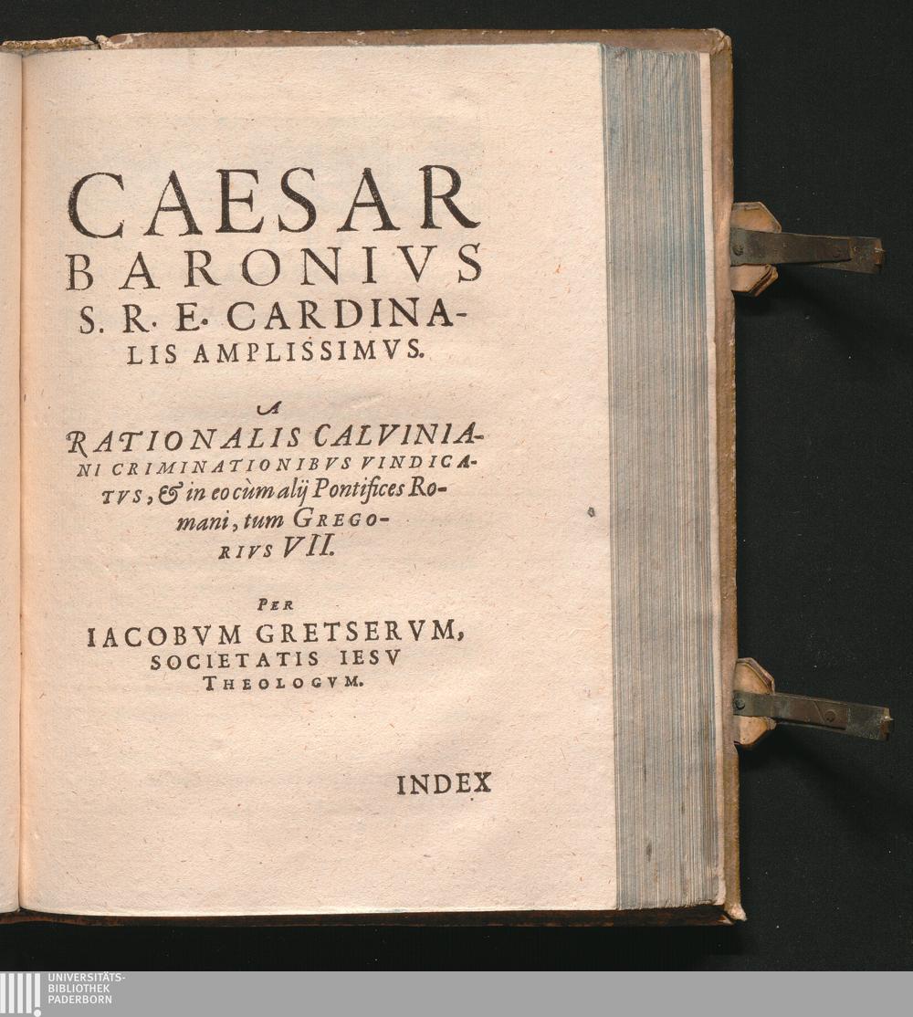 Caesar Baronivs S. R. E. Cardinalis Amplissimvs. A Rationalis Calviniani Criminationibvs[...]
