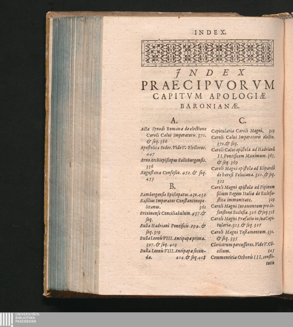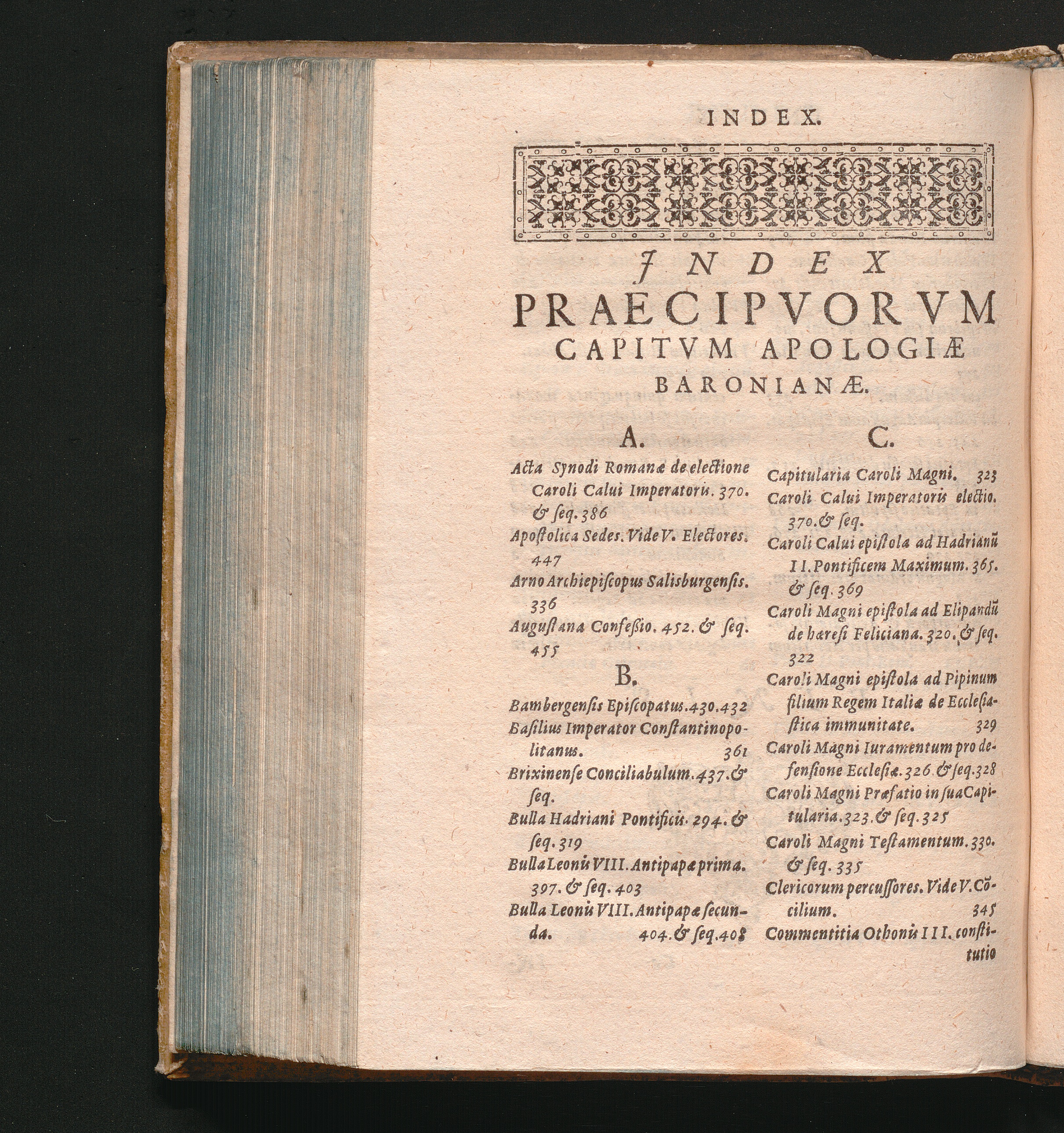 Jndex Praecipvorvm Capitvm Apologiæ Baronianæ.