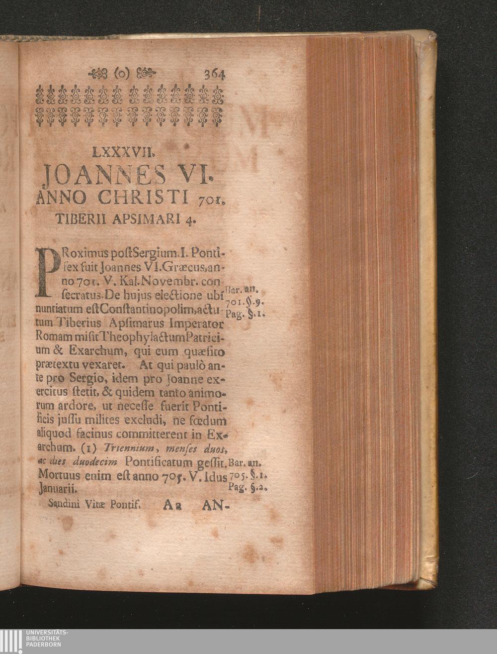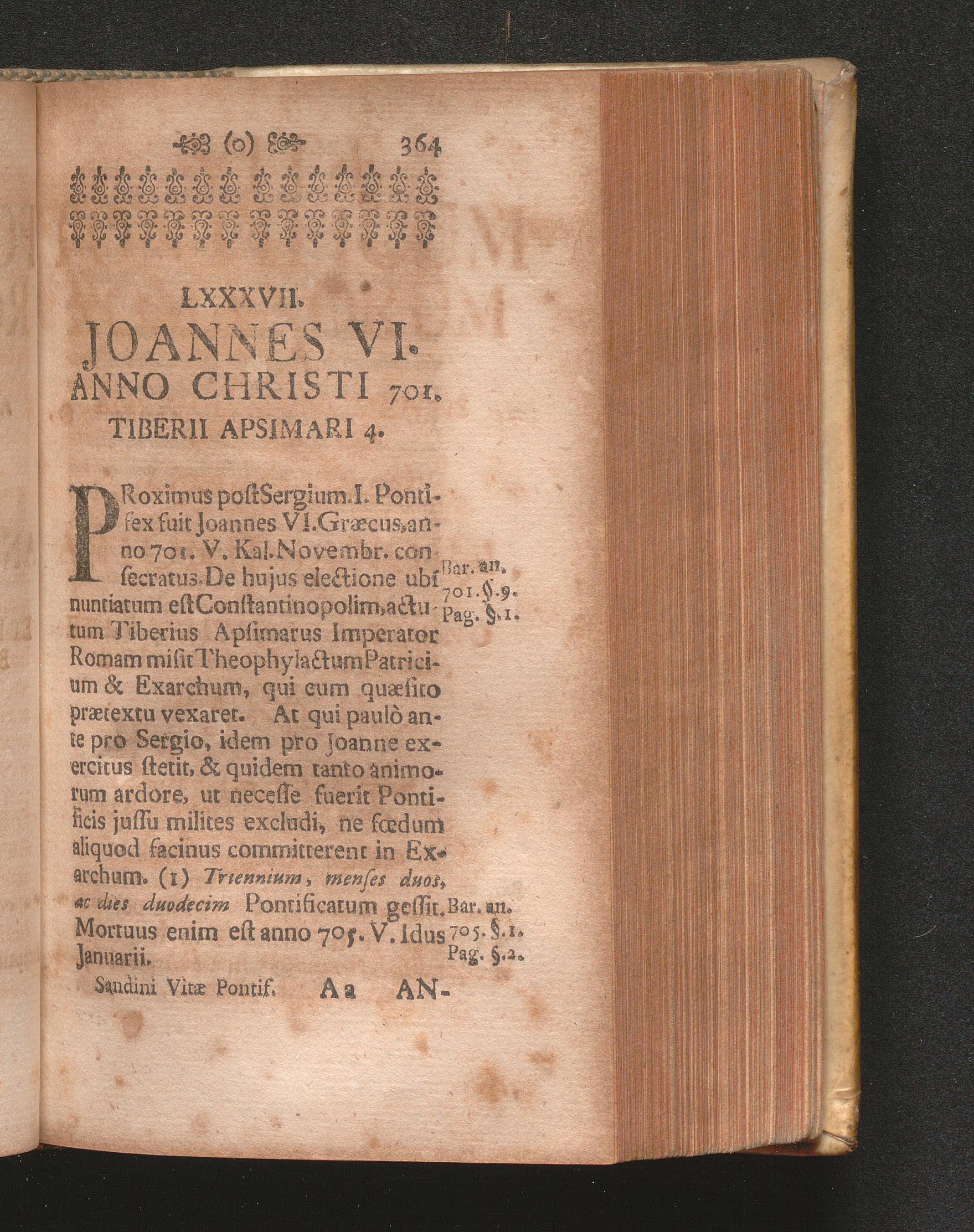LXXXVII. Joannes VI. Anno Christi 701. Tiberii Apsimari 4.