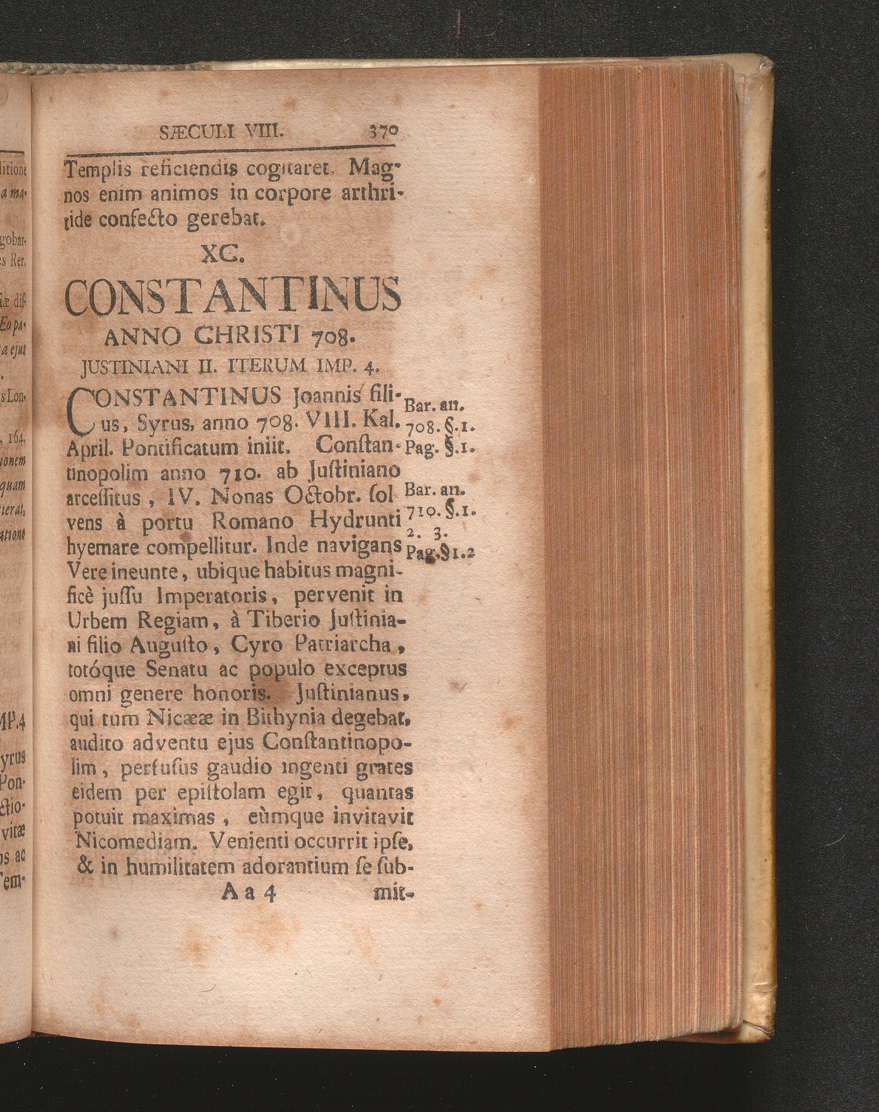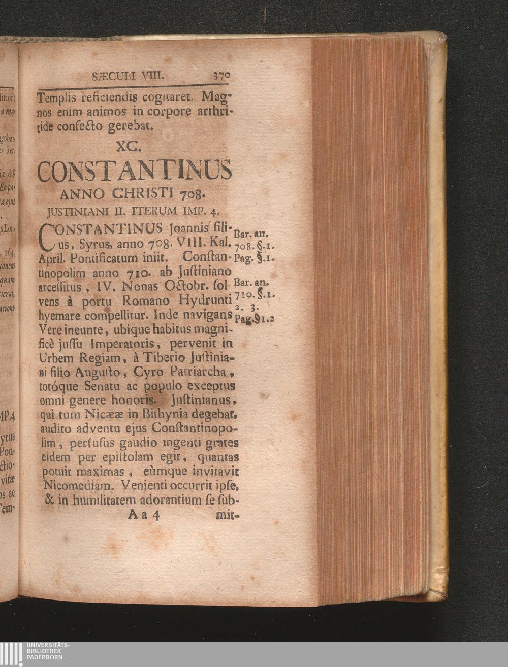 XC. Constantinus Anno Christi 708. Justiniani II. Iterum Imp. 4.