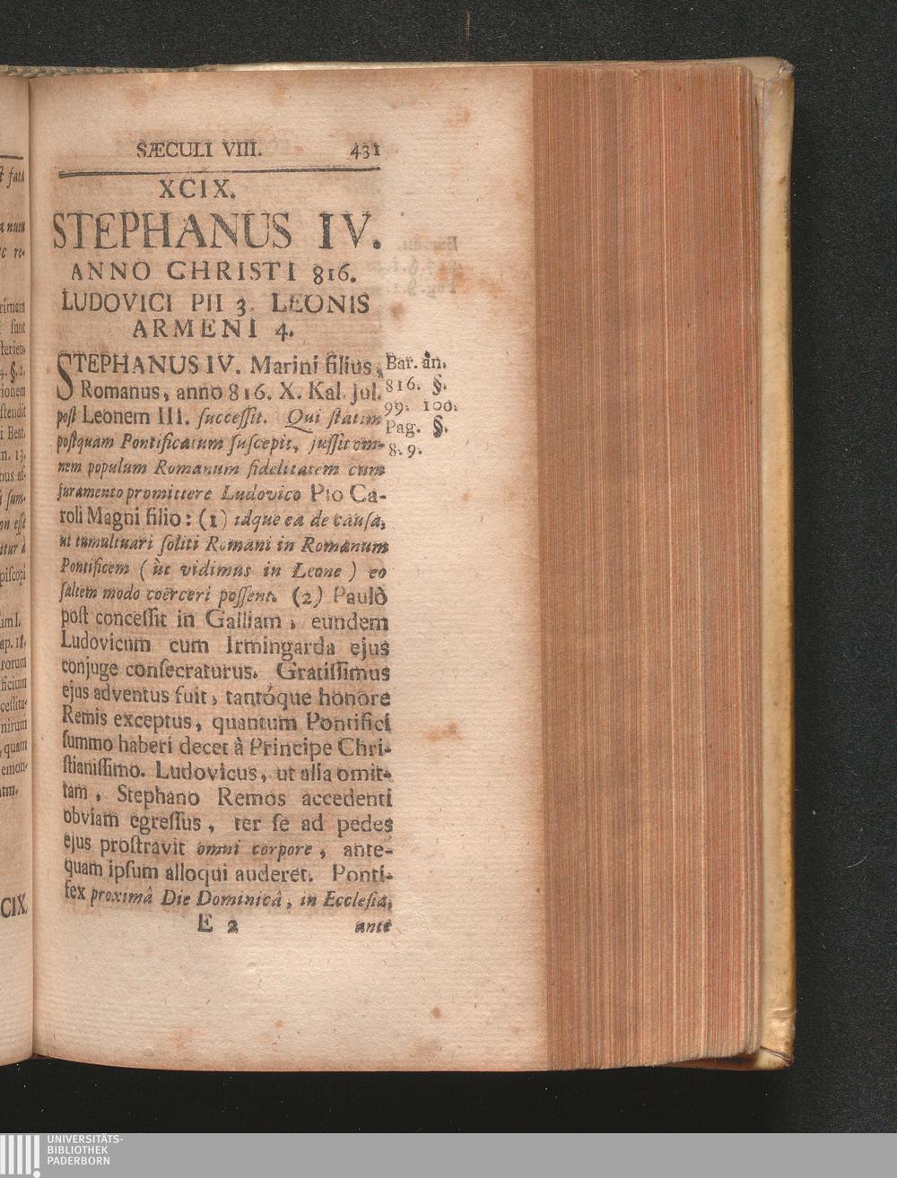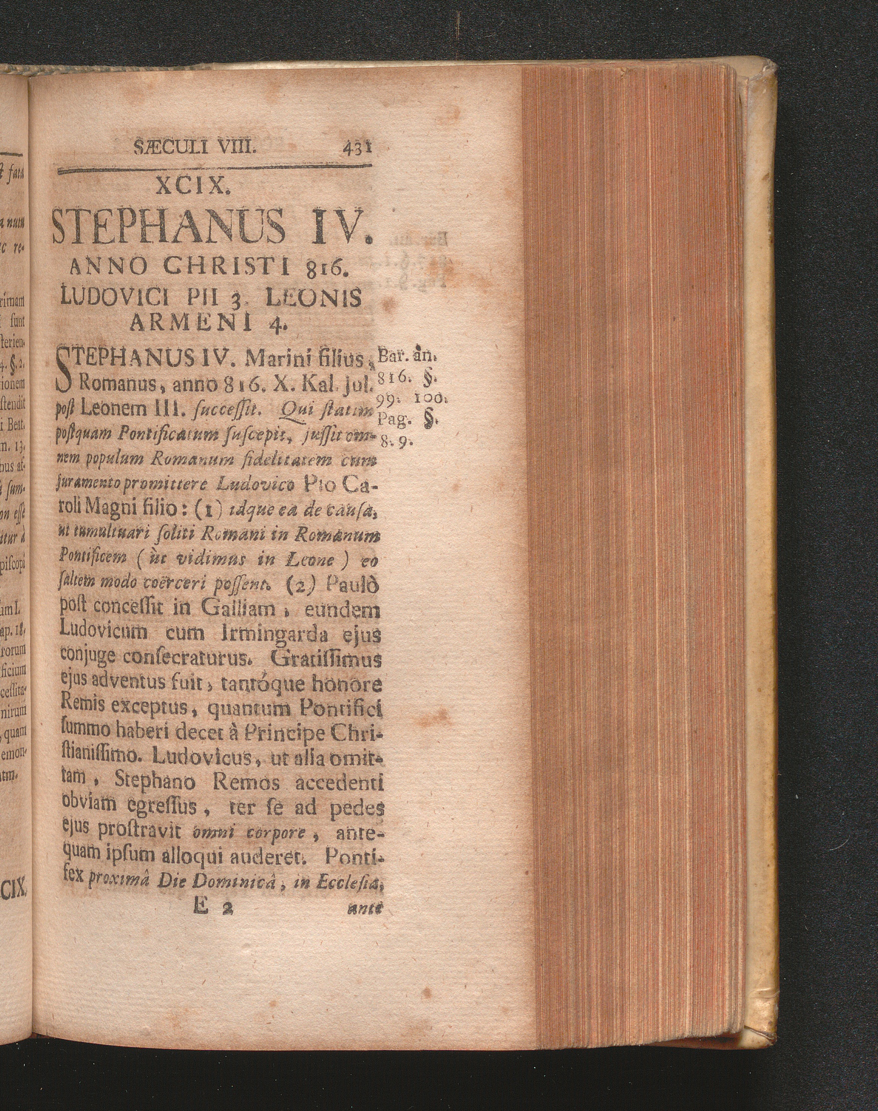 XCIX. Stephanus IV. Anno Christi 816. Ludovici Pii 3. Leonis Armeni 4.