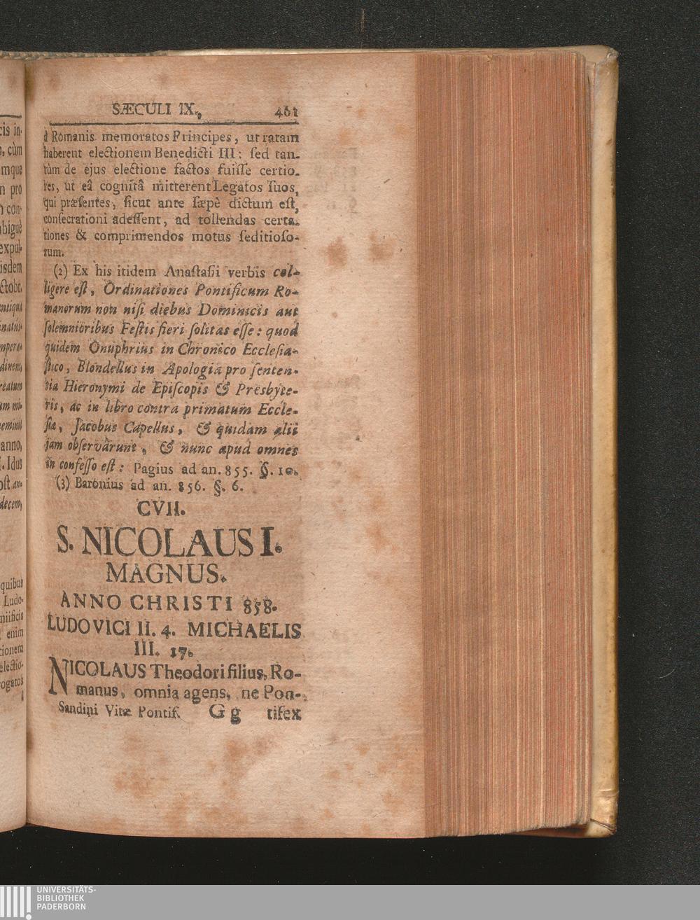 CVII. S. Nicolaus I. Magnus. anno Christi 858. Ludovici II. 4. Michaelis III. 17[...]