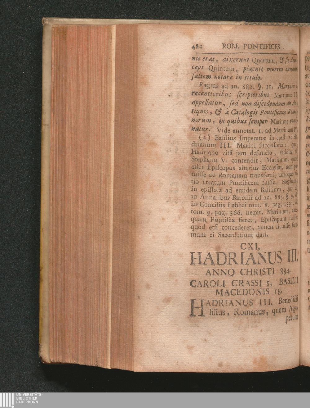 CXI. Hadrianus III. Anno Christi 884. Caroli Crassi 5. Basilii Macedonis 18.