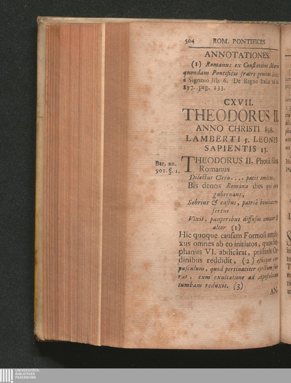 CXVII. Theodorus II. Anno Christi 898. Lamberti 5. Leonis Sapientis 13.
