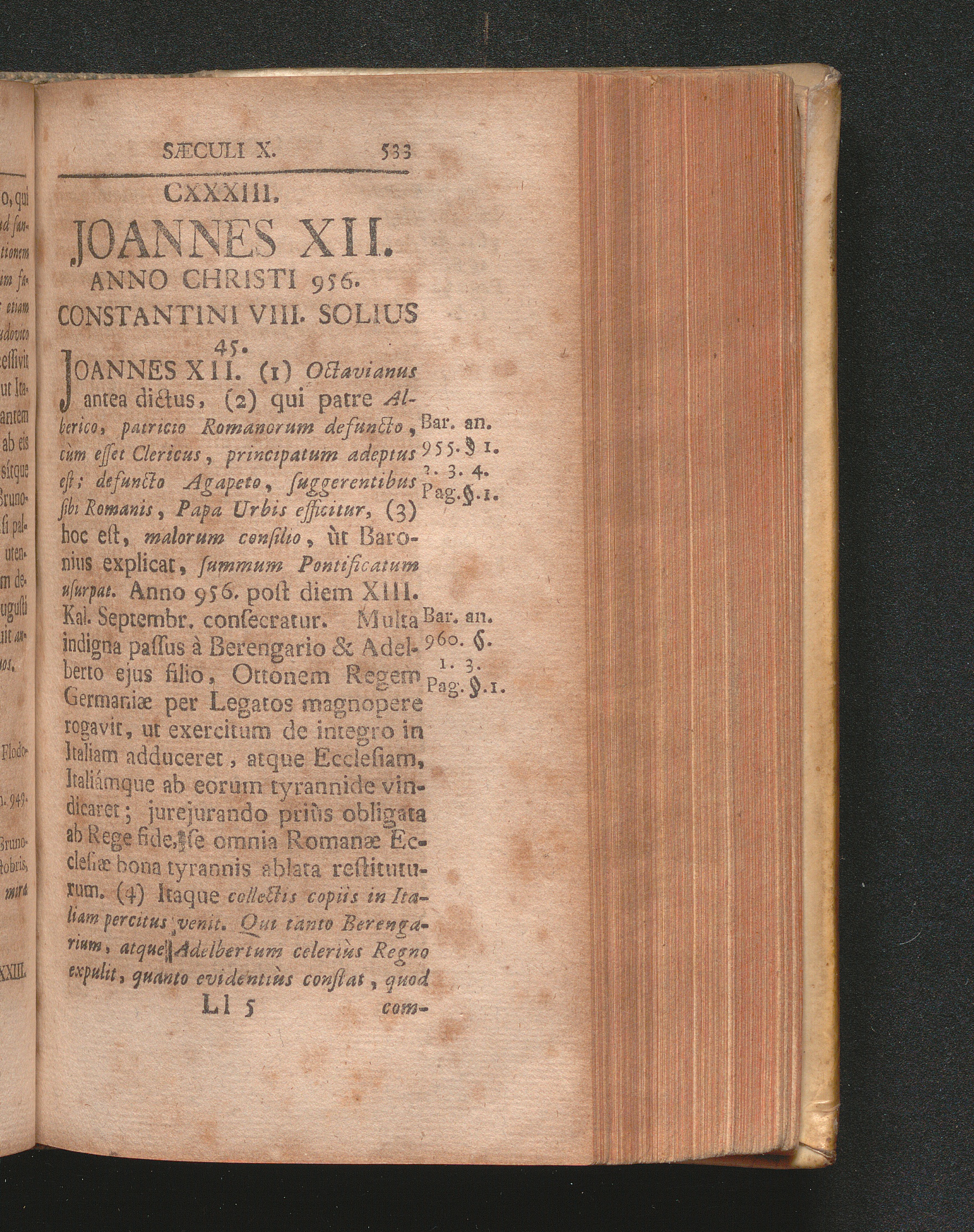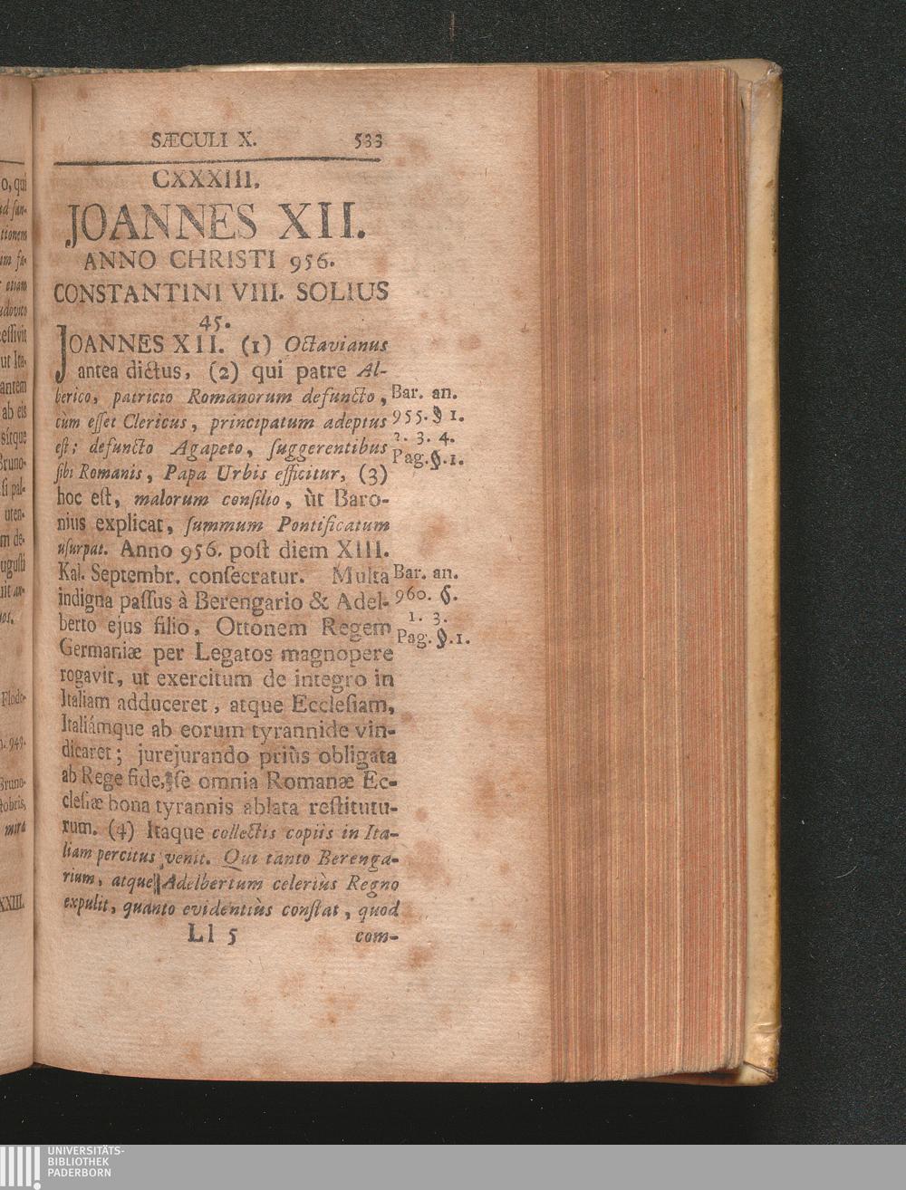 CXXXIII. Joannes XII. Anno Christi 956. Constantini VIII. Solius 45.