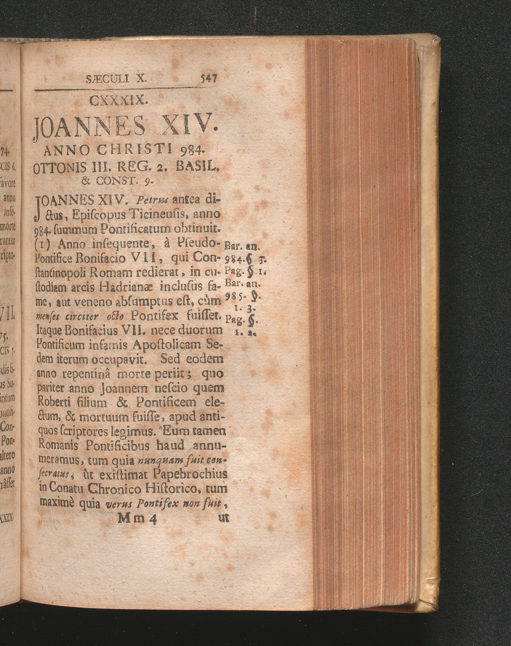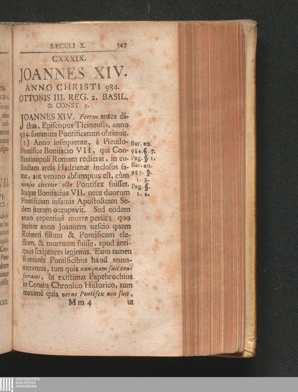 CXXXIX. Joannes XIV. Anno Christi 984. Ottonis III. Reg. 2. Basil. & Const. 9.