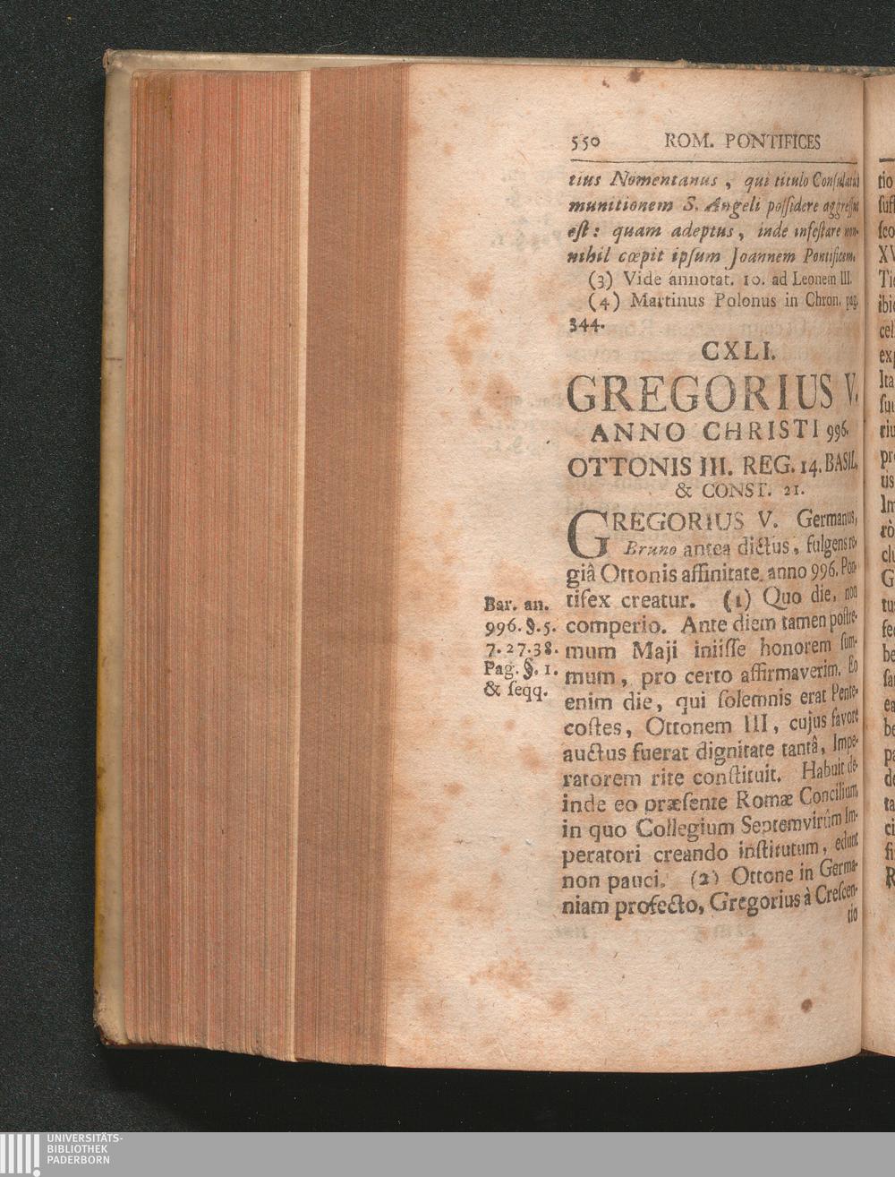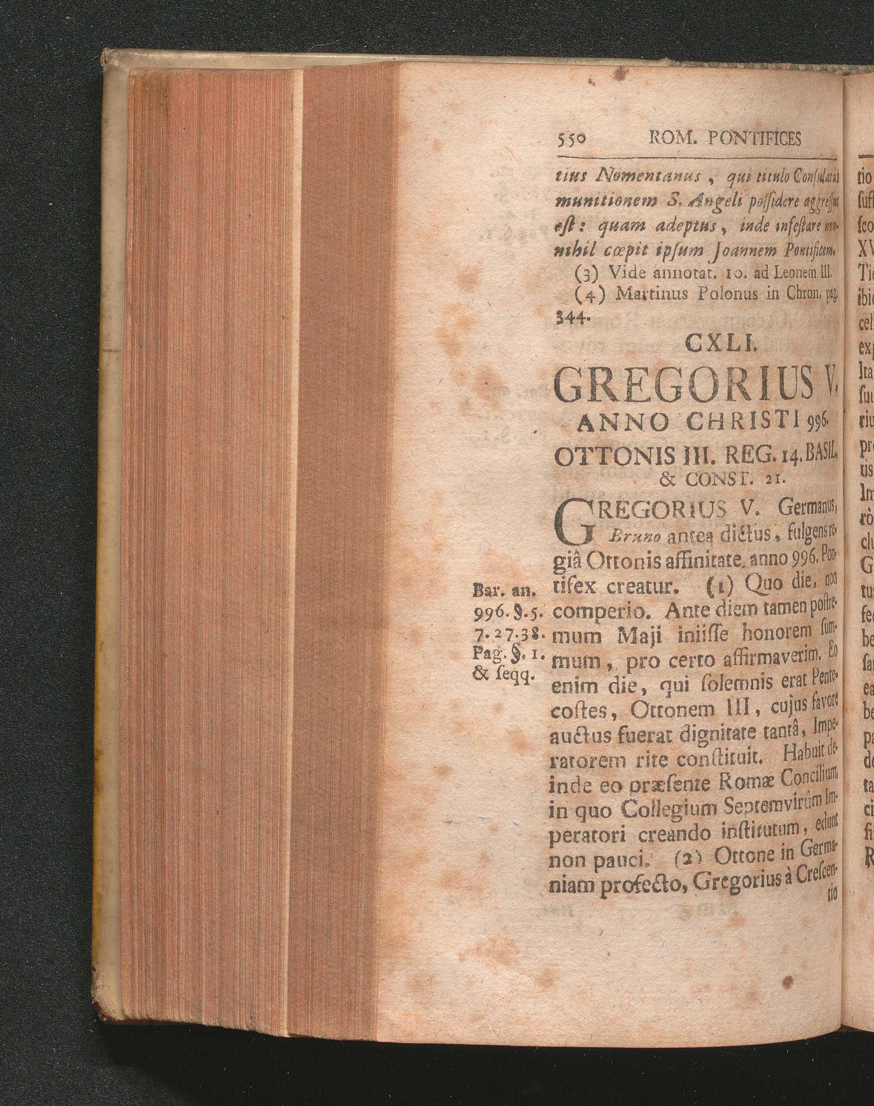 CXLI. Gregorius V. Anno Christi 996. Ottonis III. Reg. 14. Basil. & Const. 21.