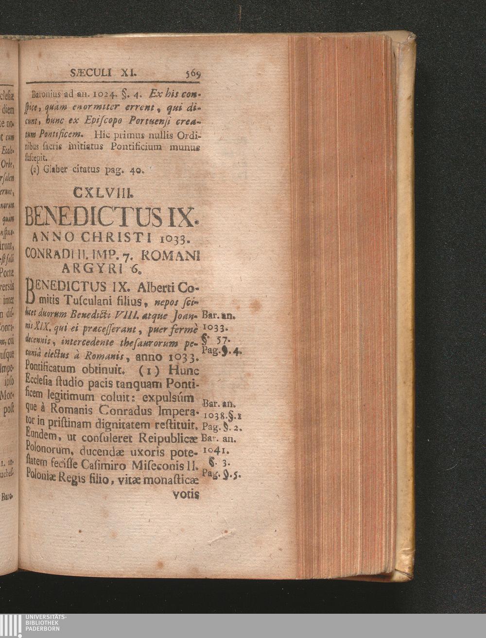 CXLVIII. Benedictus IX. Anno Christi 1033. Conradi II. Imp. 7. Romani Argyri 6.