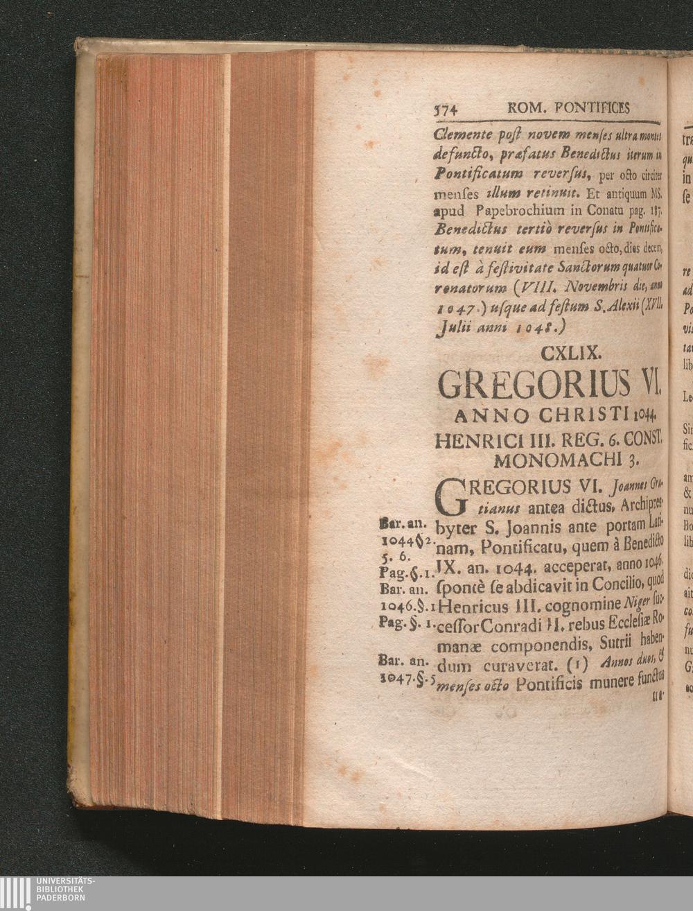 CXLIX. Gregorius VI. Anno Christi 1044. Henrici III. Reg. 6. Const. Monomachi 3.