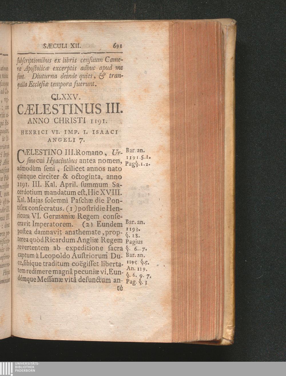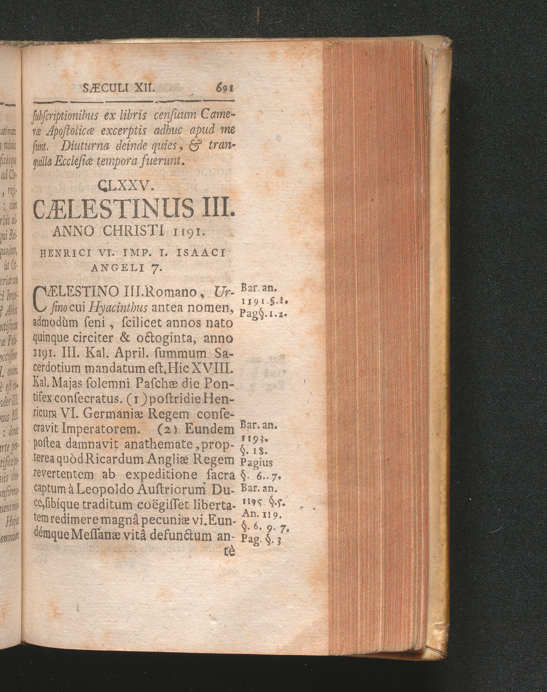 CLXXV. Cælestinus III. Anno Christi 1191. Henrici VI. Imp. Isaaci Angeli 7.