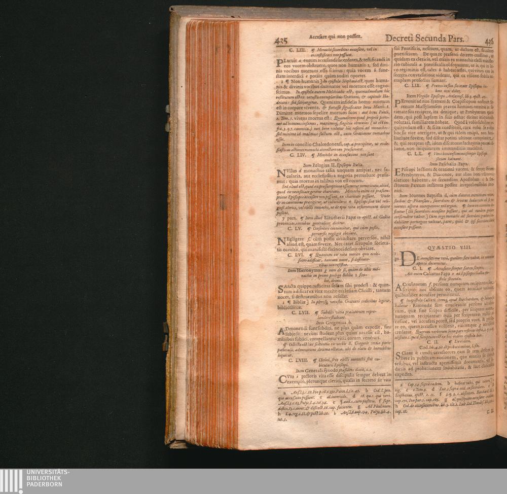Corpus Juris Canonici : Emendatum Et Notis Illustratum. Indicibus Variis, Novisq[ue] Et Appendice Pauli Lancelotti Perusini Adauctum: Cujus Partes Indicat Aversa Pagina. Accesserunt Novissimè Loci Communes uberrimi, summâ diligentiâ ex ipsis Canonibus collecti, & ordine ac methodo singulari ad usum Fori utriusque fideliter Digesti: Theologis, Politicis, & Practicis pernedessarij. Itemq[ue] Liber VII. Decretalium hac primùm editione Novis aliquot Constitutionibus auctus / Gregorii XIII. Pont. Max. Jussu Editum