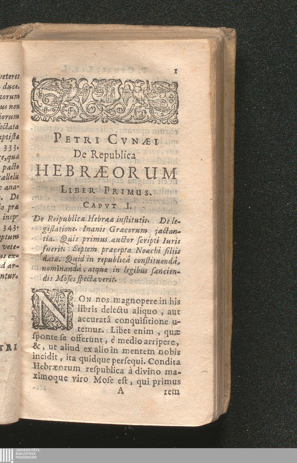 Capvt. I. De Reipublicæ Hebrææ institutis. De legislatione. Inanis Græcorum jactantia.[...]