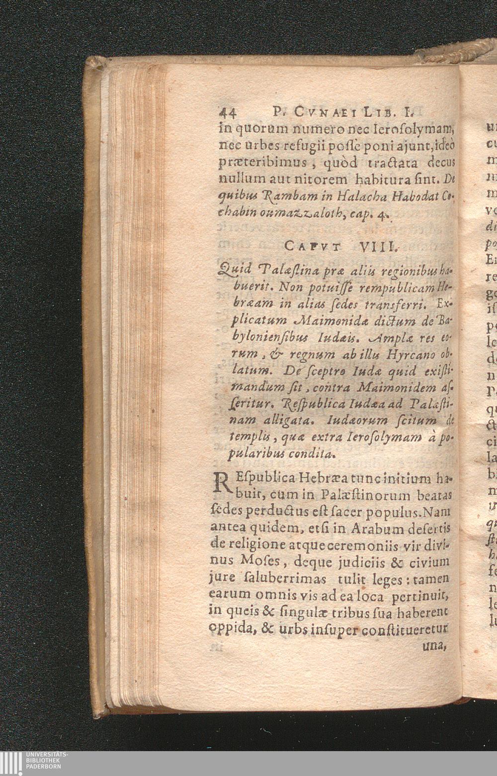 Cap. VIII. Quid Palæstina præ aliis regionibus habuerit. Non potuisse rempublicam[...]