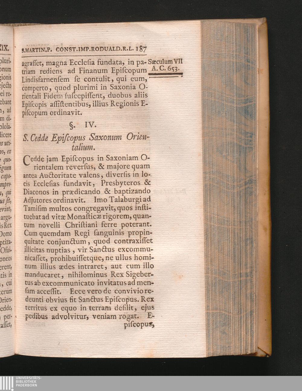 §. 4. S. Cedde Episcopus Saxonum Orientalium.