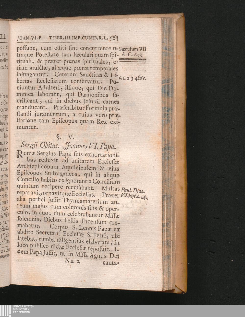 §. 5. Sergii Obitus. Joannes VI. Papa.