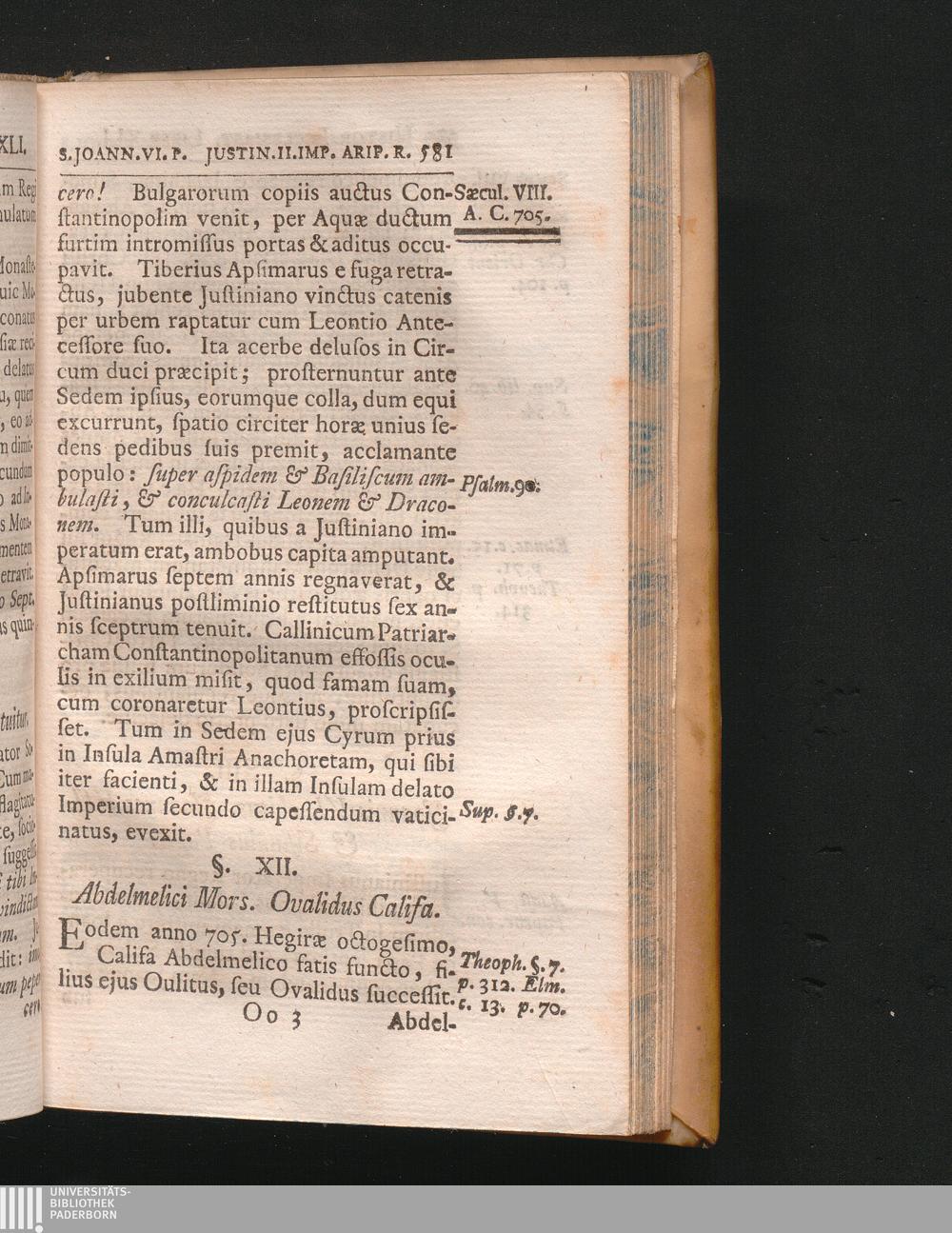 §. 12. Abdelmelici mors. Ovalidus Califa.