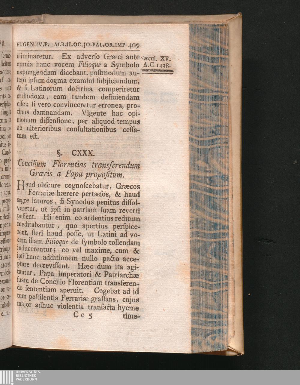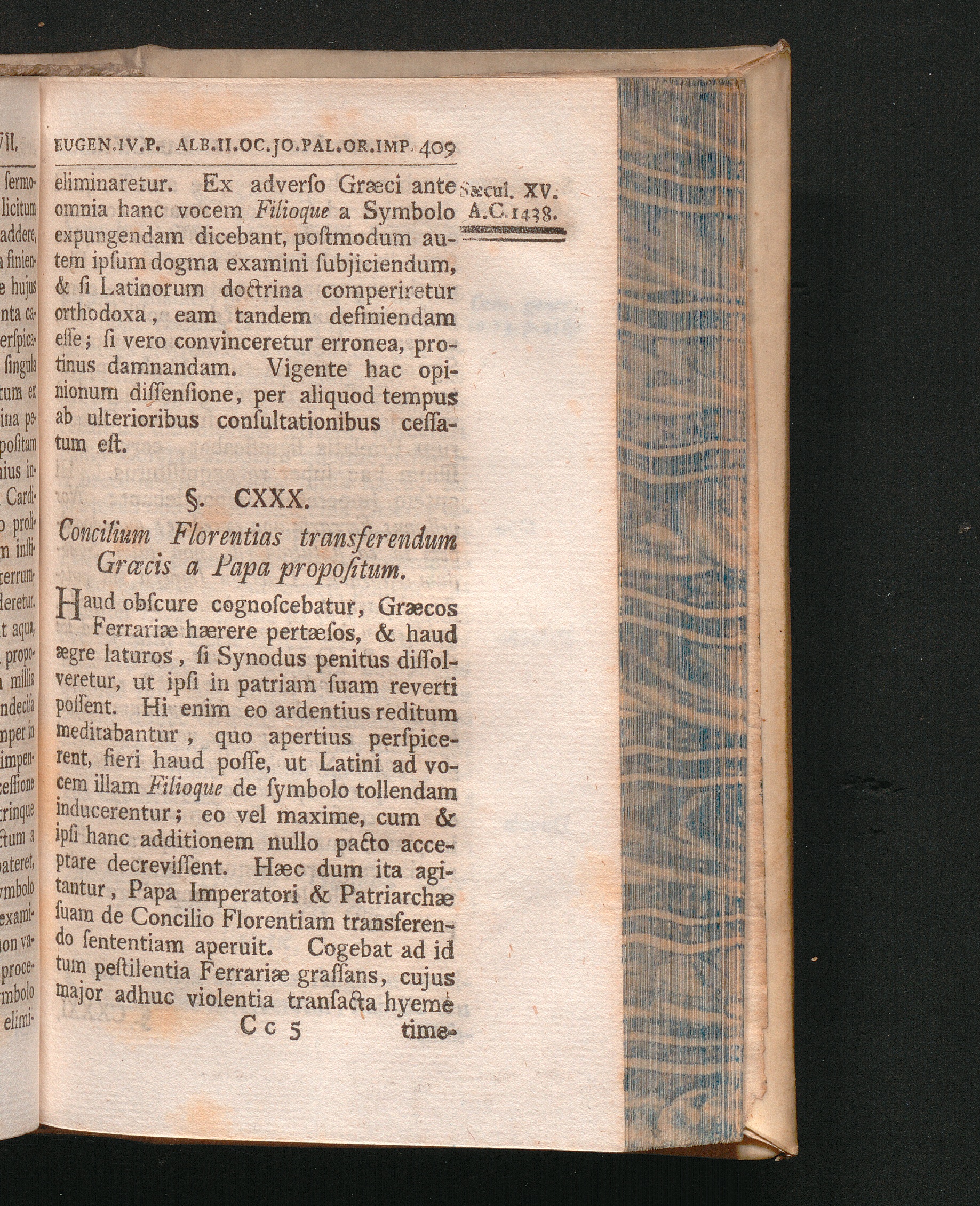 §. 130. Concilium Florentias transferendum Græcis a Papa propositum.