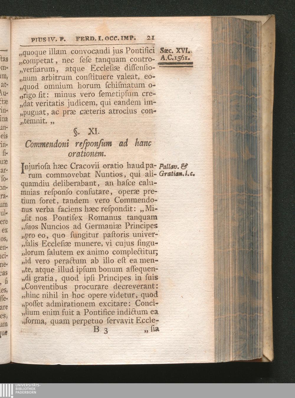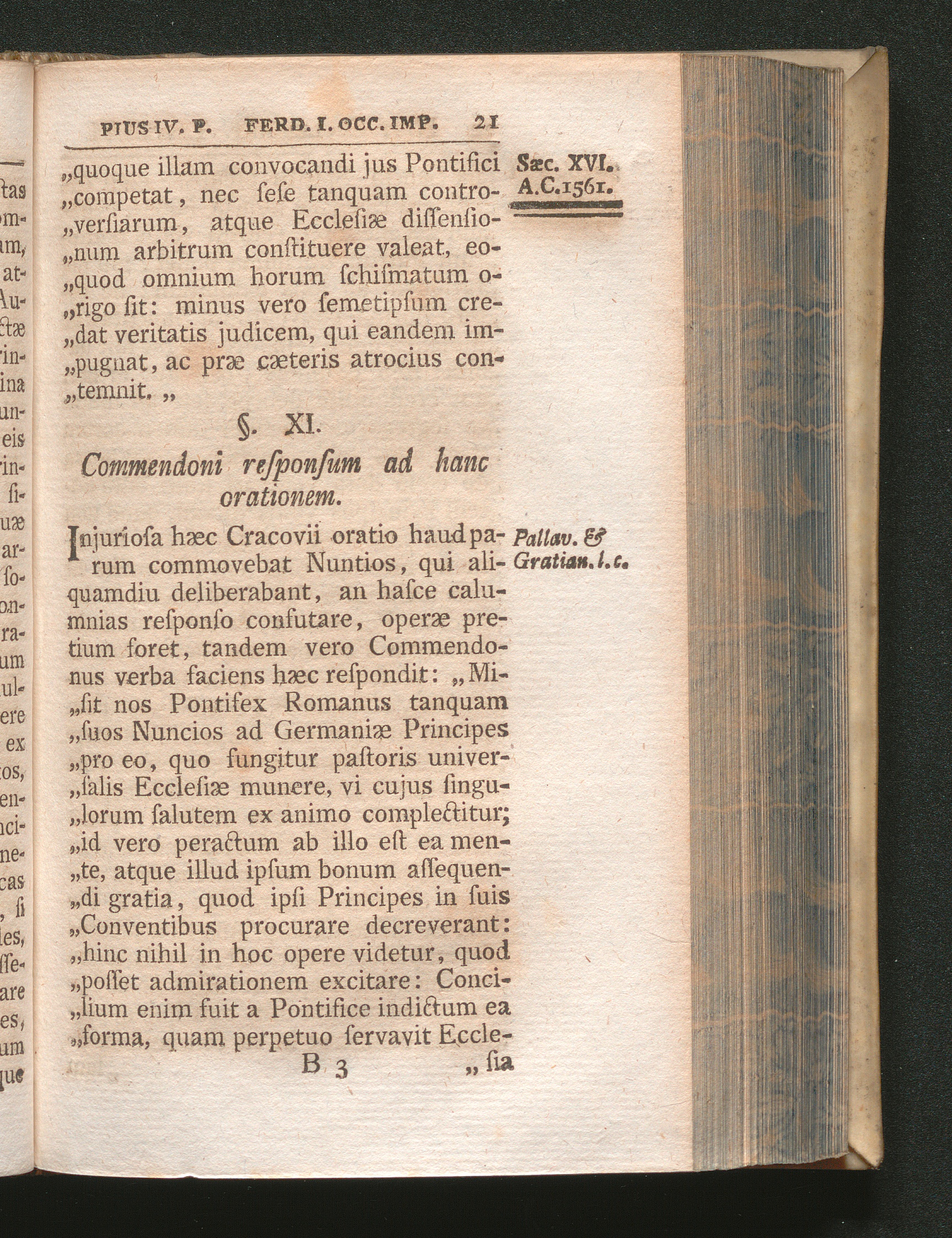 §. 11. Commendoni responsum ad hanc orationem.