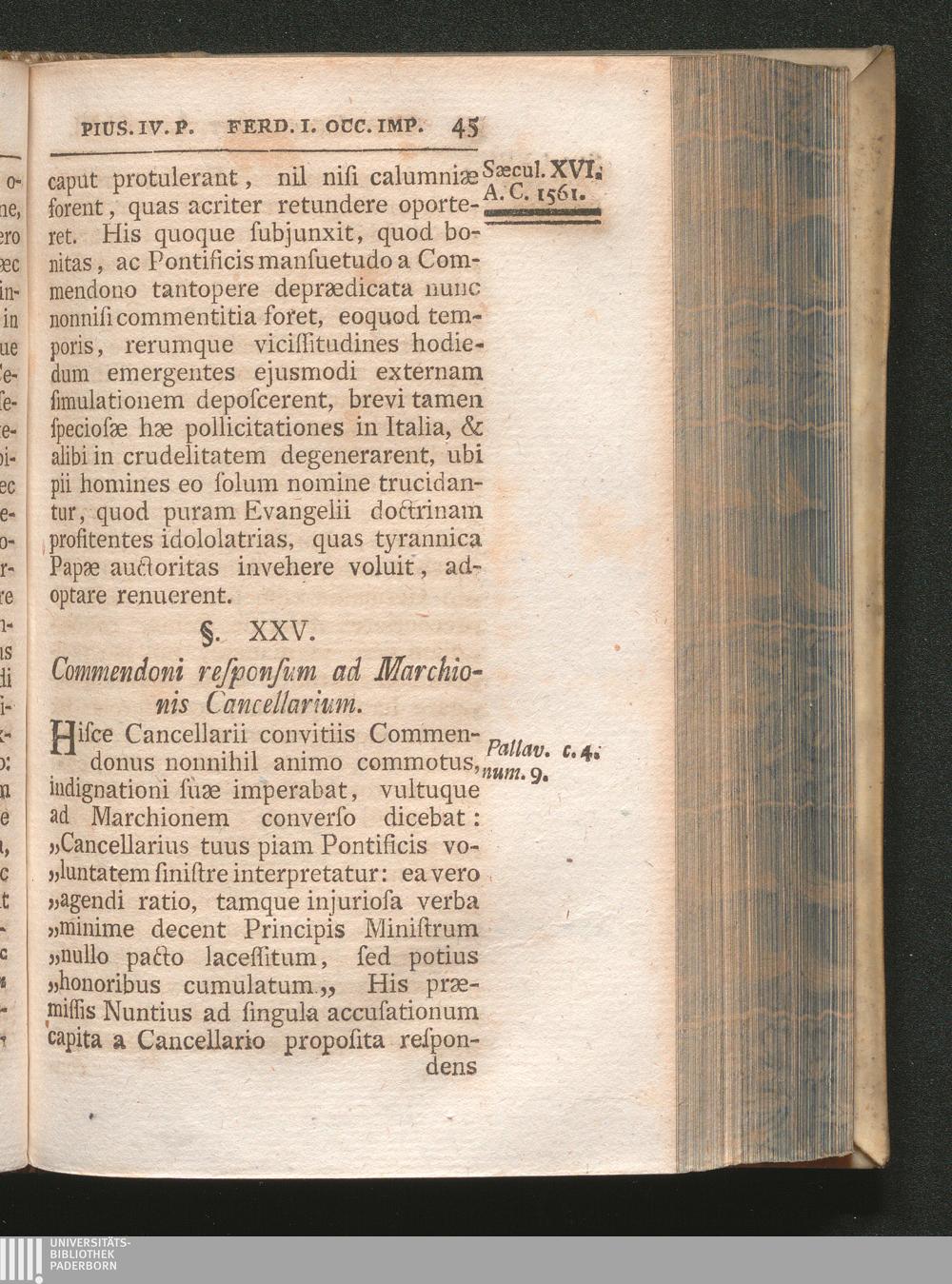 §. 25. Commendoni responsum ad Marchionis Cancellarium.