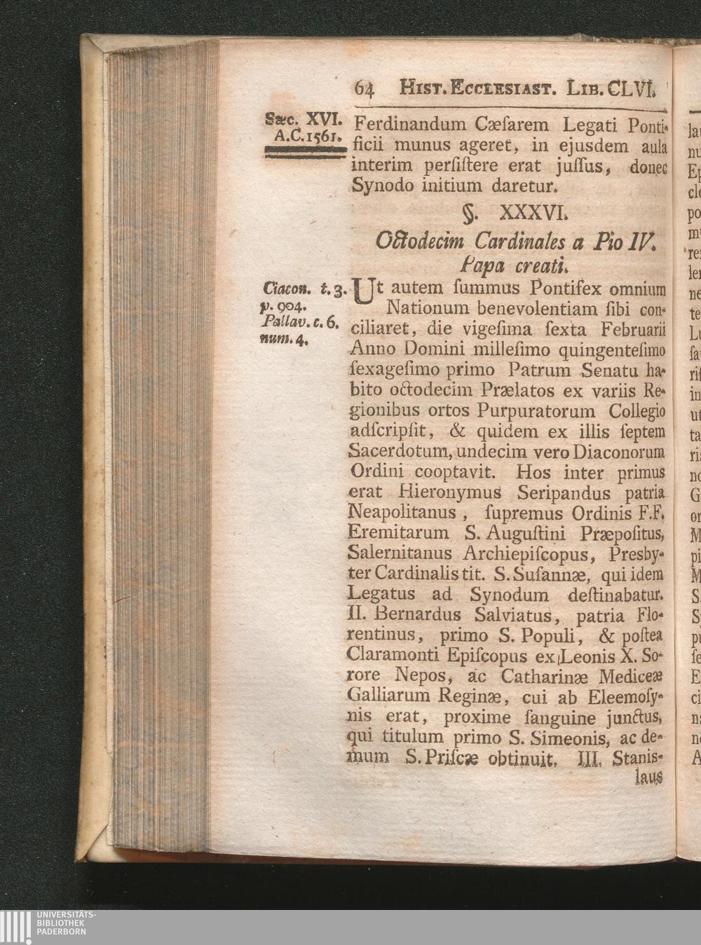 §. 36. Octodecim Cardinales a Pio IV. Papa creati.