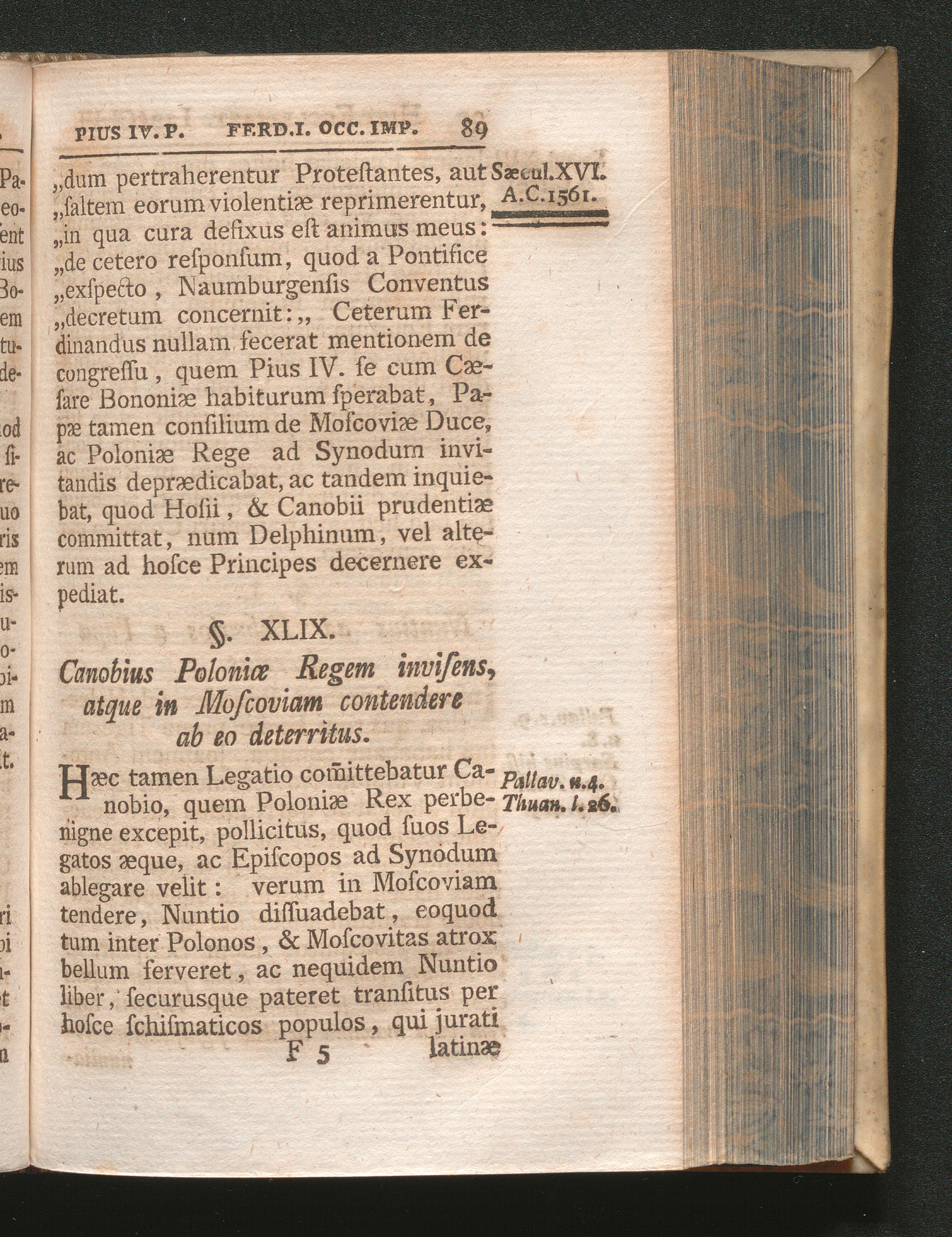§. 49. Canobius Poloniæ Regem invisens, atque in Moscoviam contendere ab eo dete[...]
