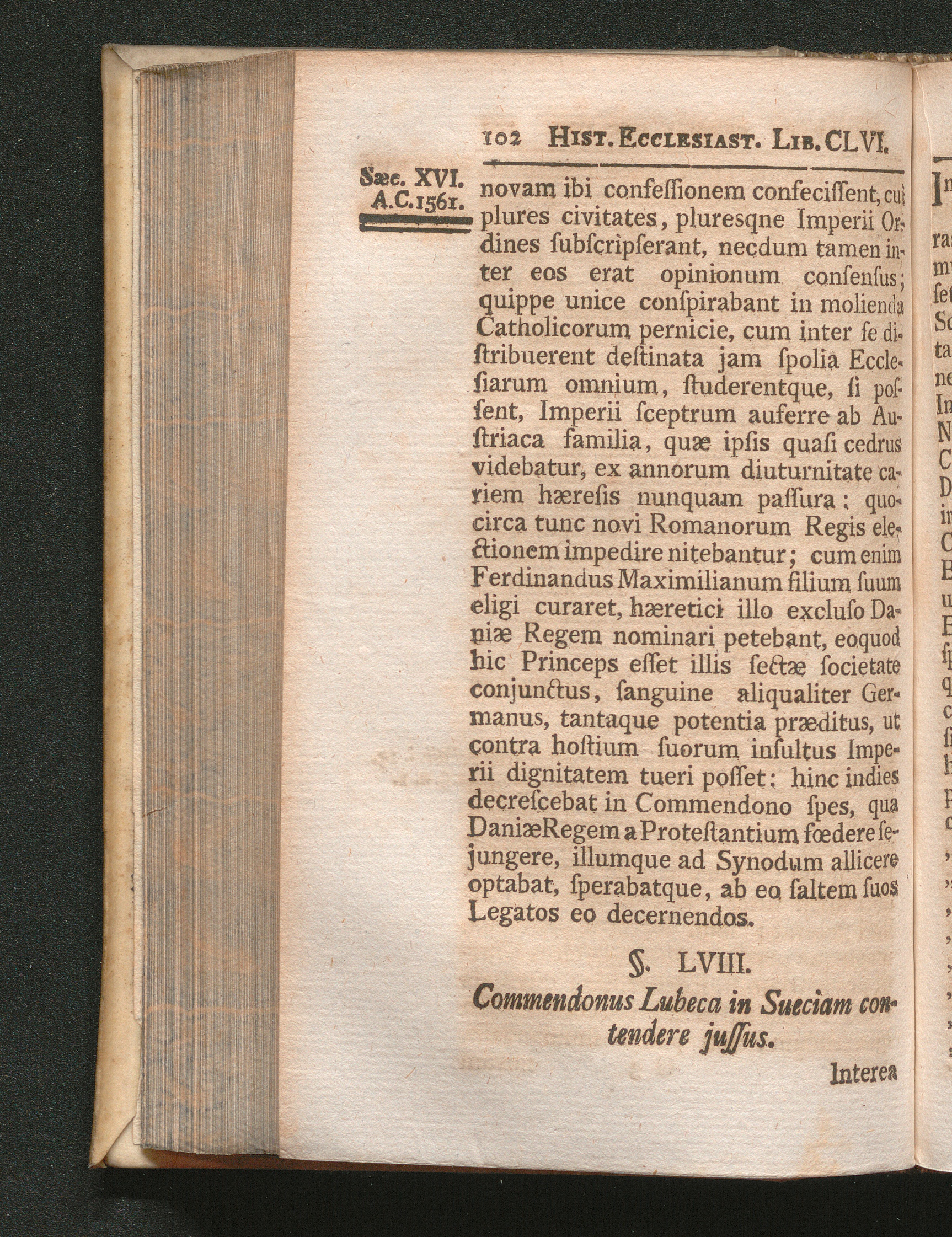 §. 58. Commendonus Lubeca in Sueciam contendere jussus.