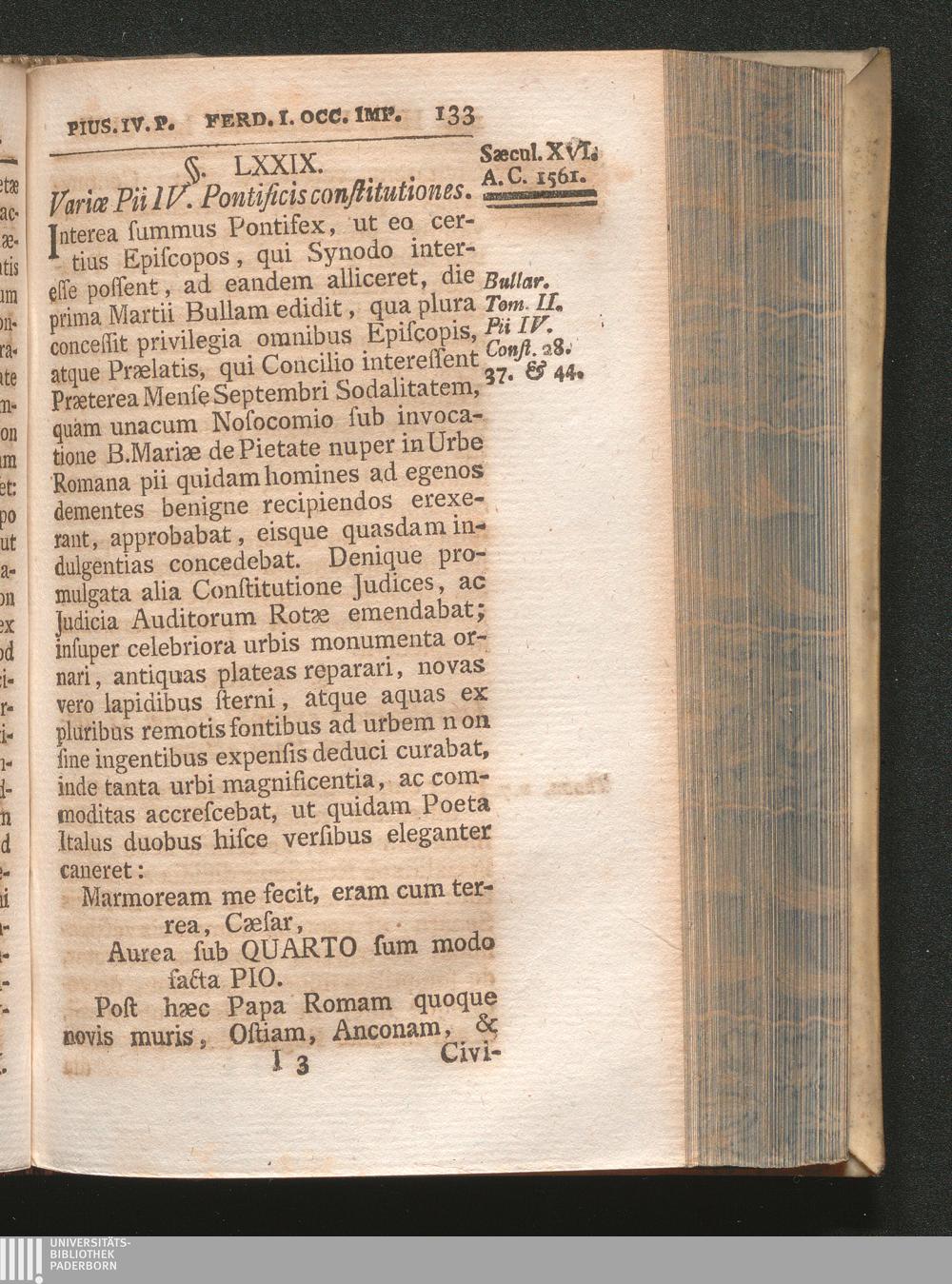 §. 79. Variæ Pii IV. Pontificis constitutiones.