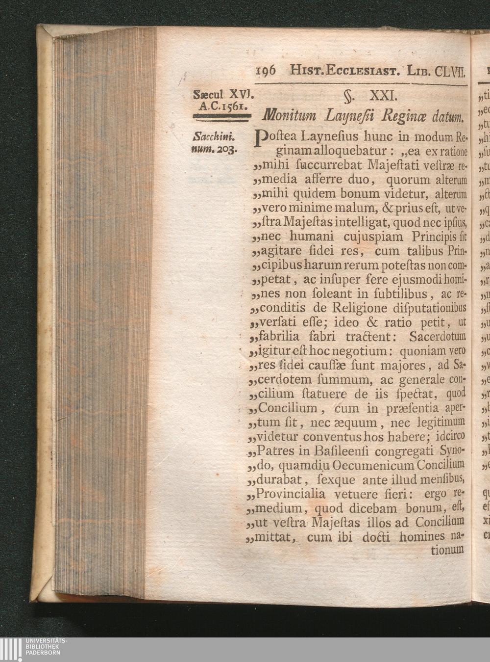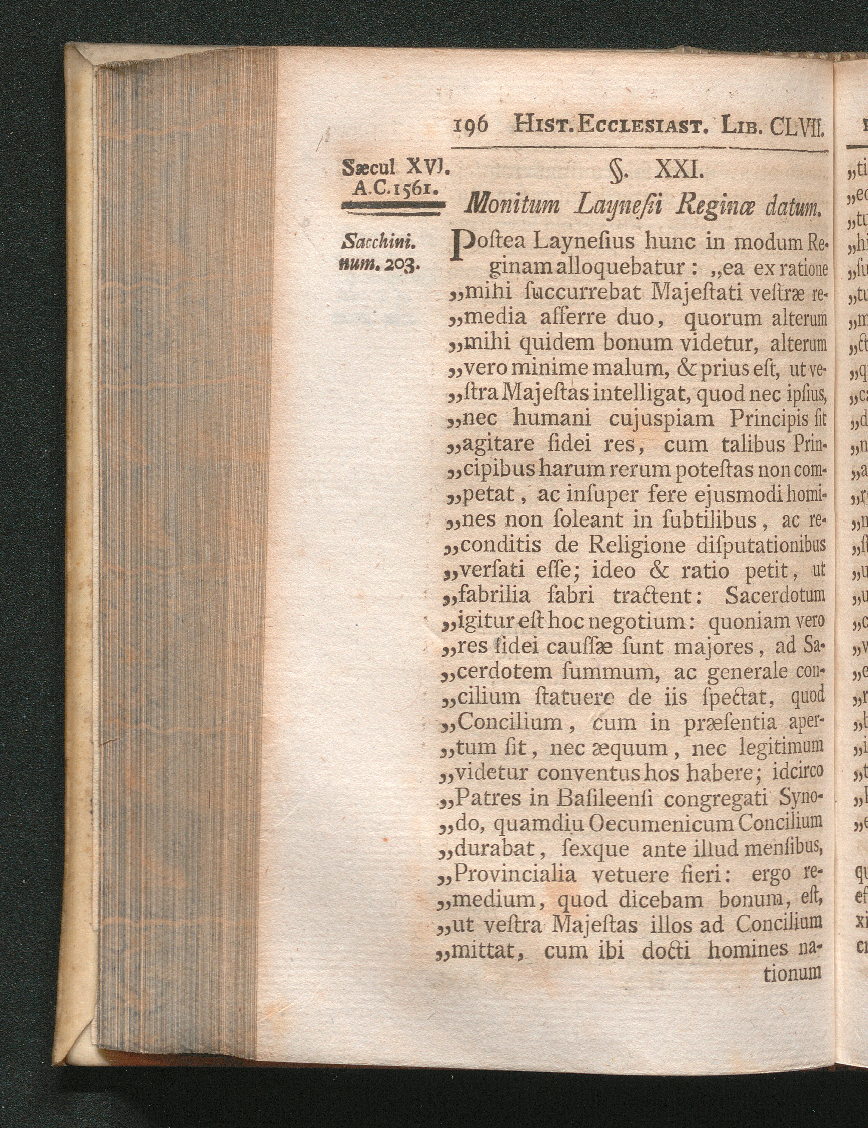 §. 21. Monitum Laynesii Reginæ datum.