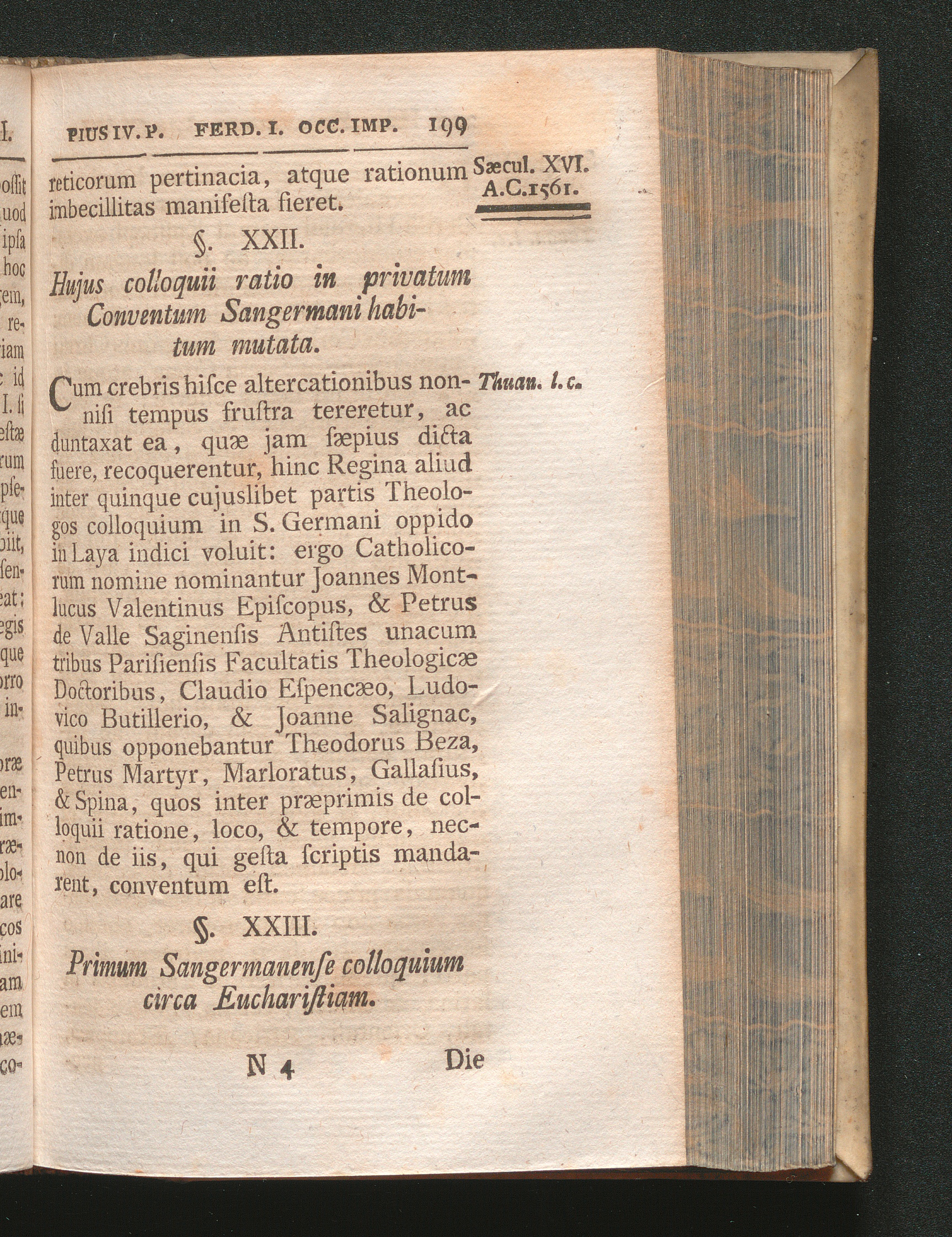 §. 23. Primum Sangermanense colloquium circa Eucharistiam.