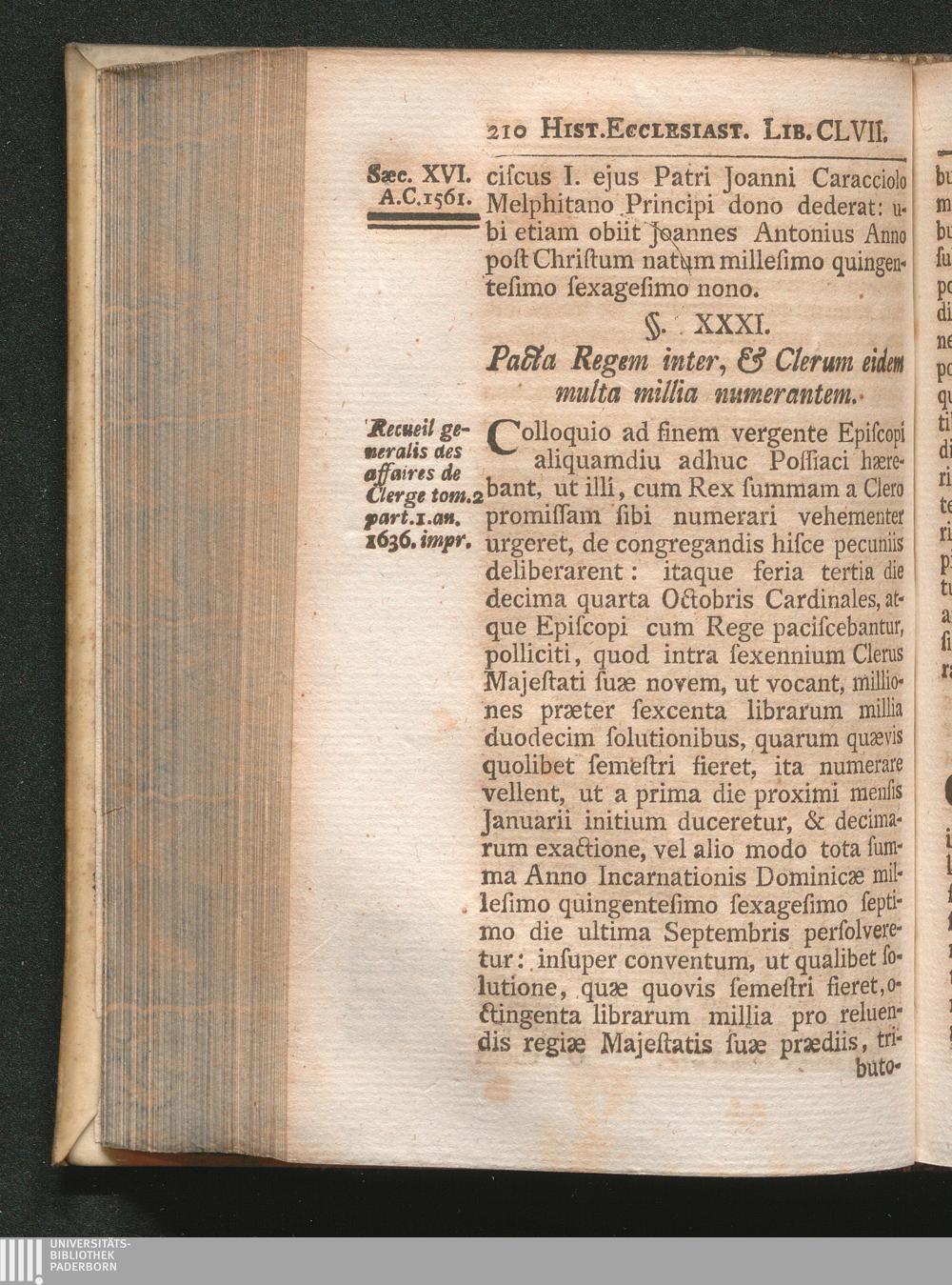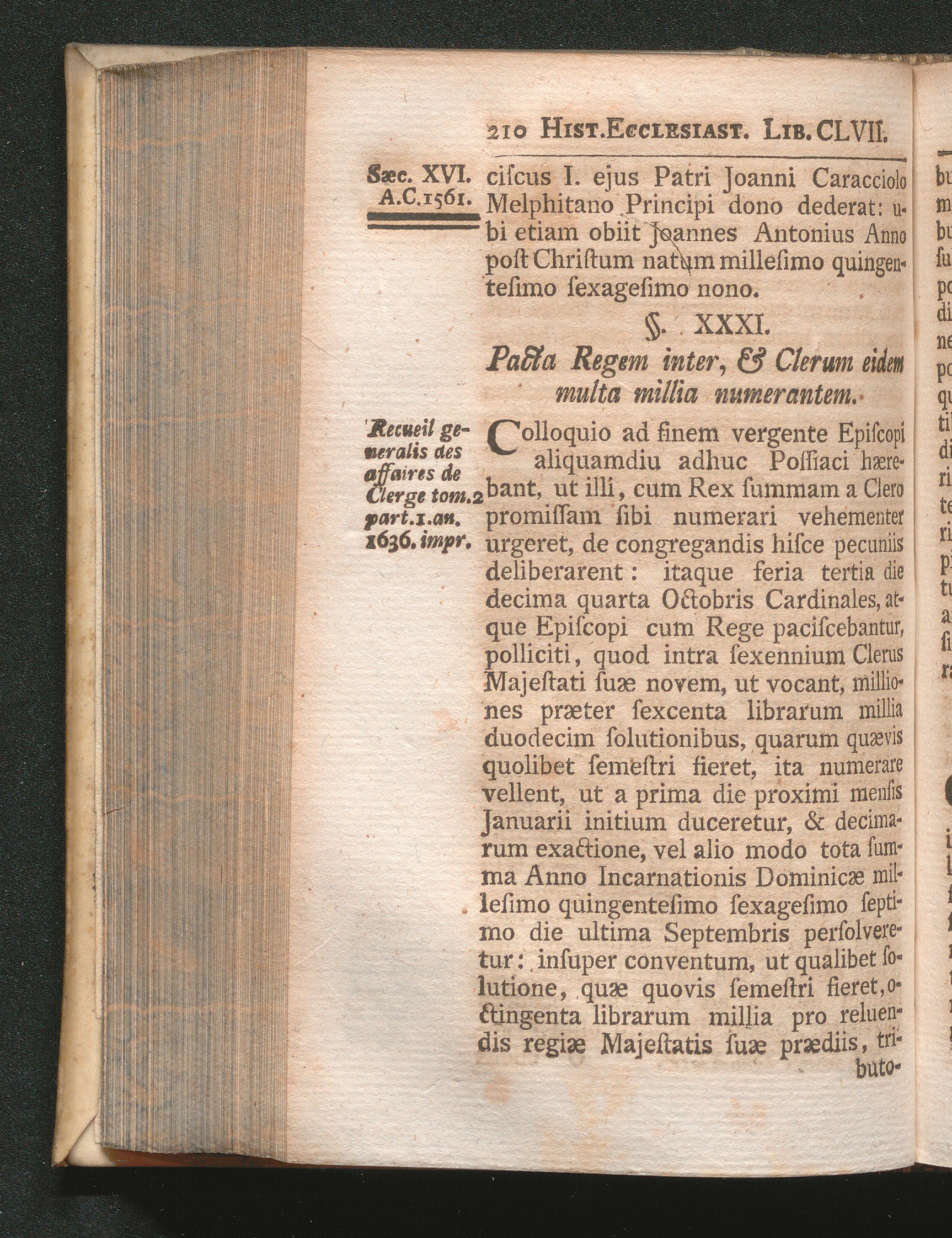 §. 31. Pacta Regem inter, & Clerum eidem multa millia numerantem.