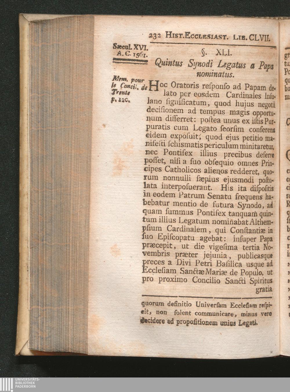 §. 41. Quintus Synodi Legatus a Papa nominatus.