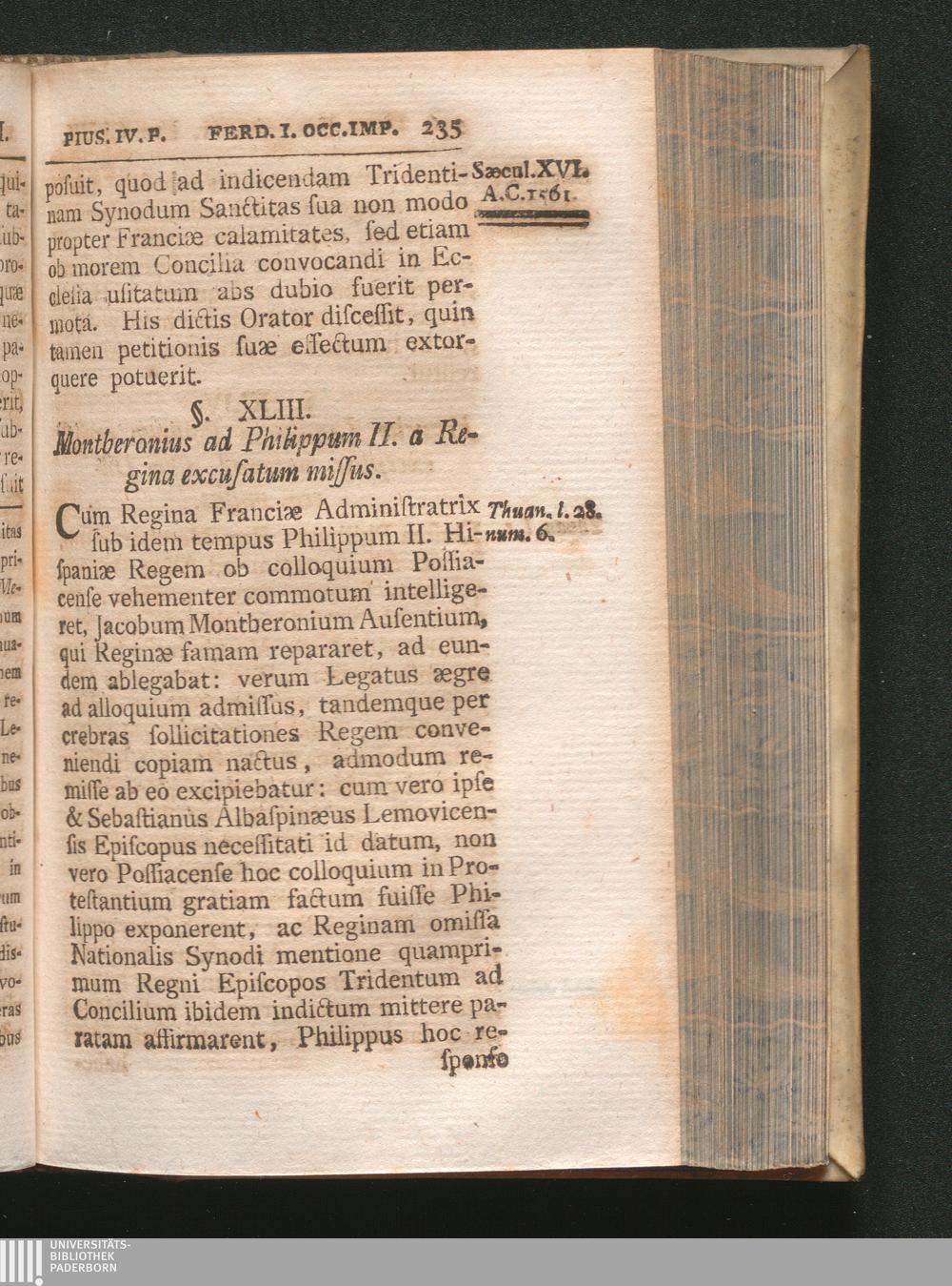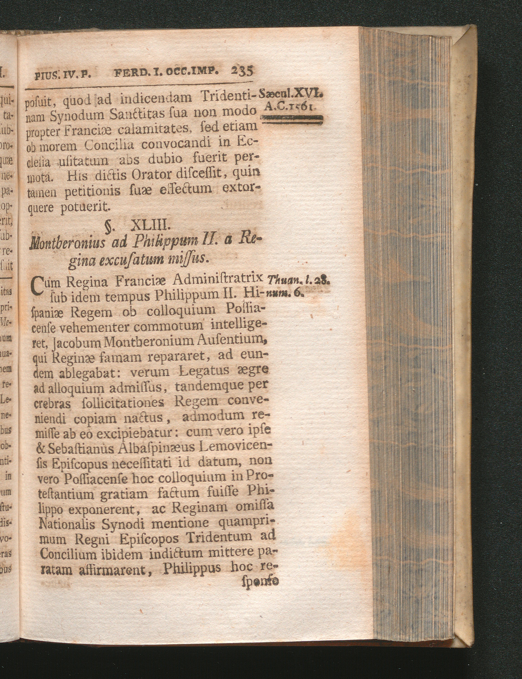 §. 43. Montberonius ad Philippum II. a Regina excusatum missus.