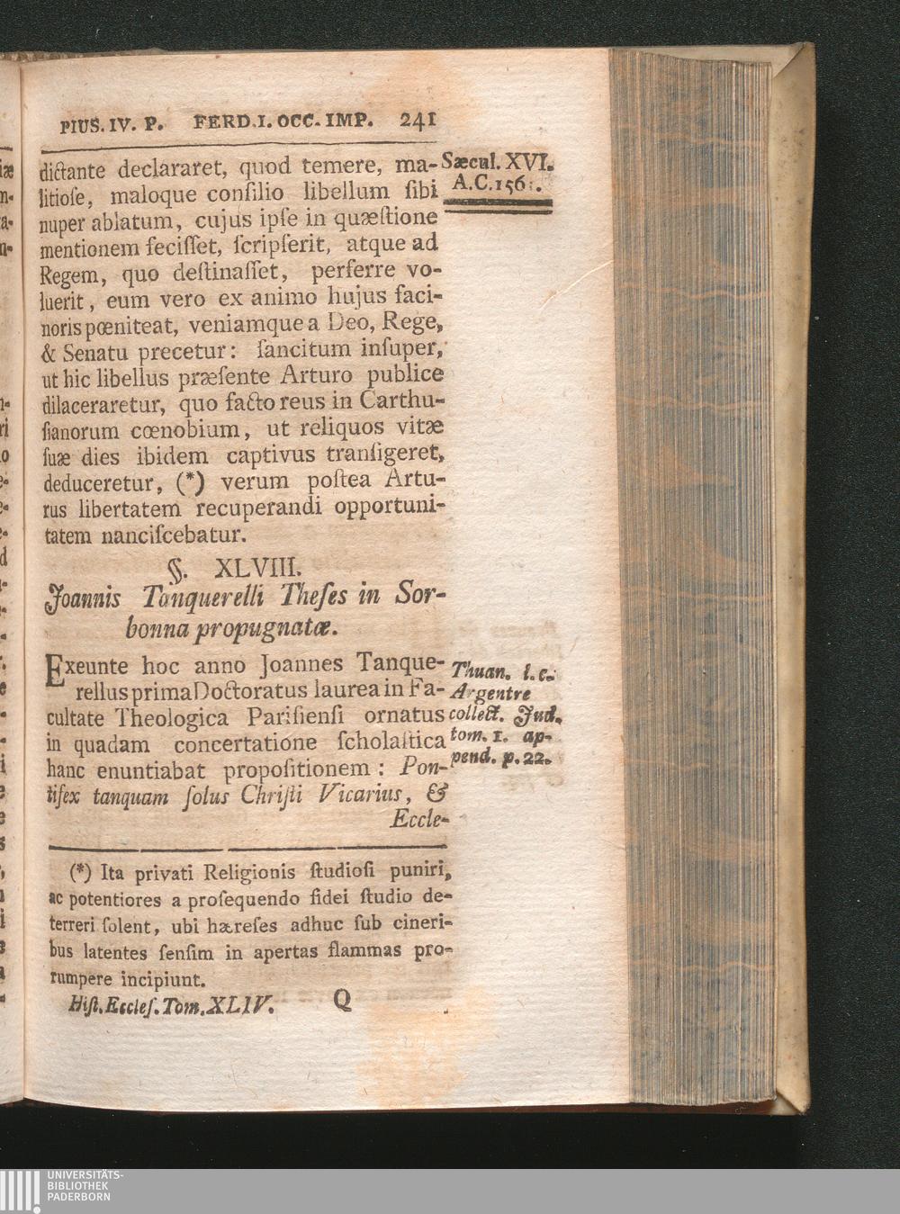 §. 48. Joannis Tanquerelli Theses in Sorbonna propugnatæ.