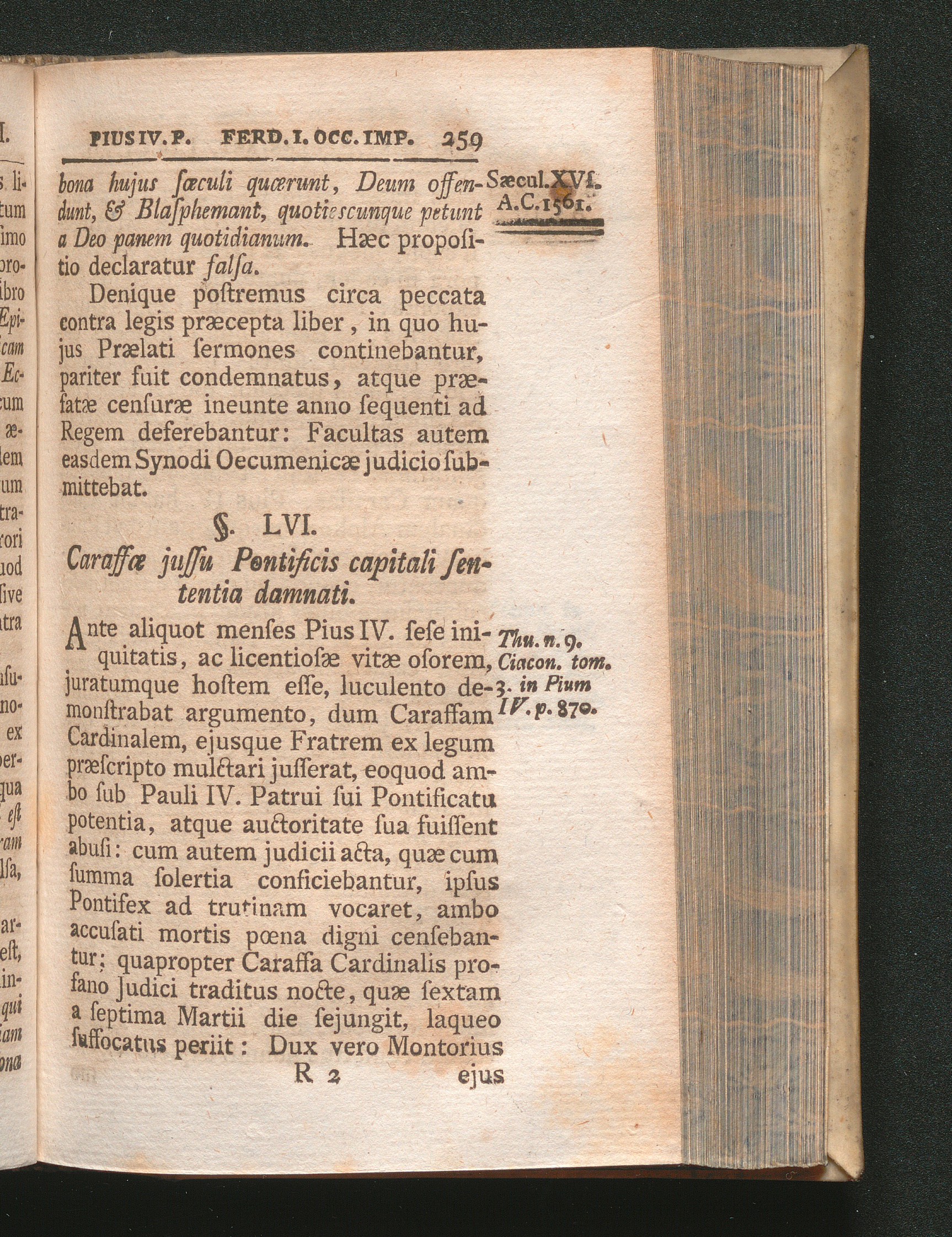 §. 56. Caraffæ jussu Pontificis capitali sententia damnati.