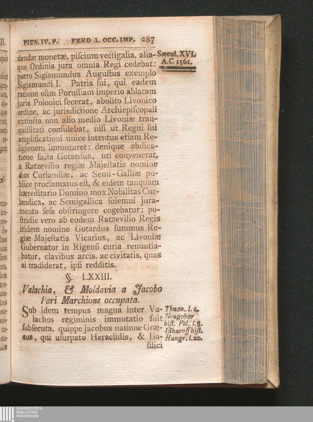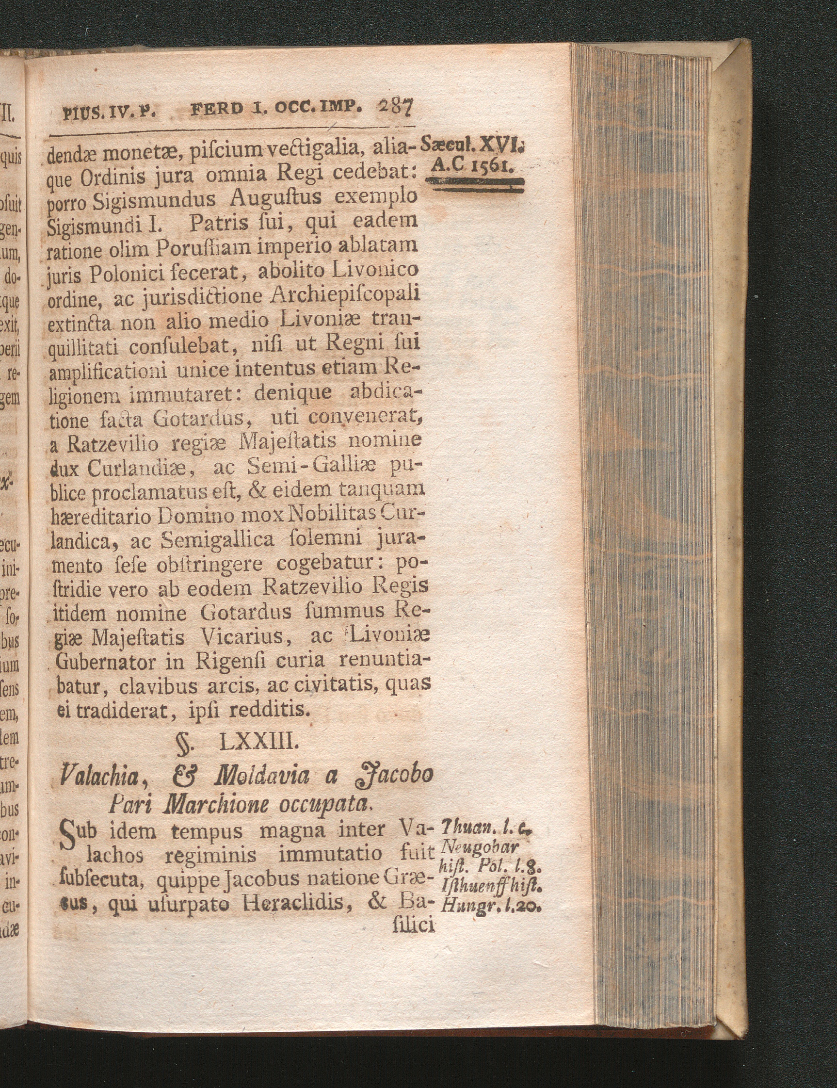 §. 73. Valachia, & Moldavia a Jacobo Pari Marchione occupata.