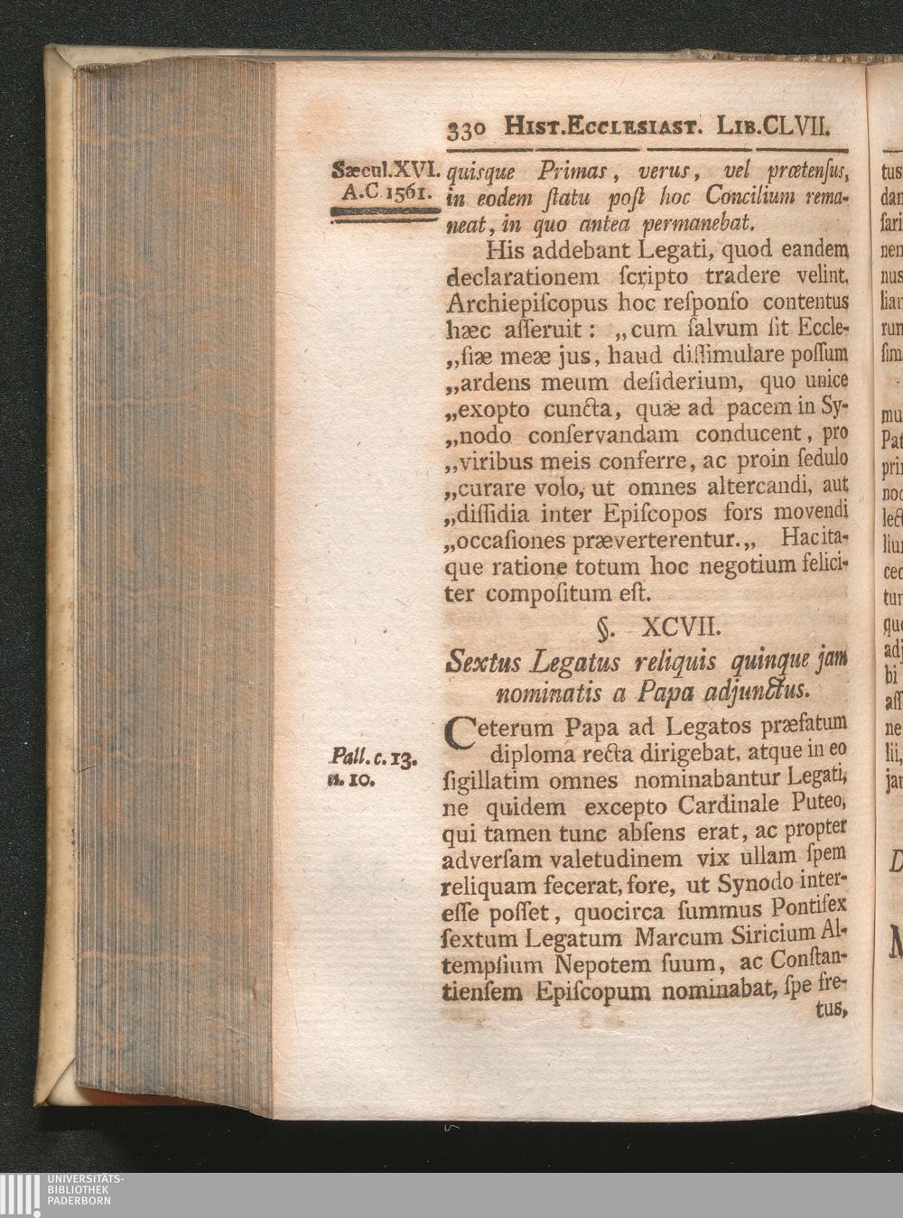 §. 97. Sextus Legatus reliquis quinque jam nominatis a Papa adjunctus.