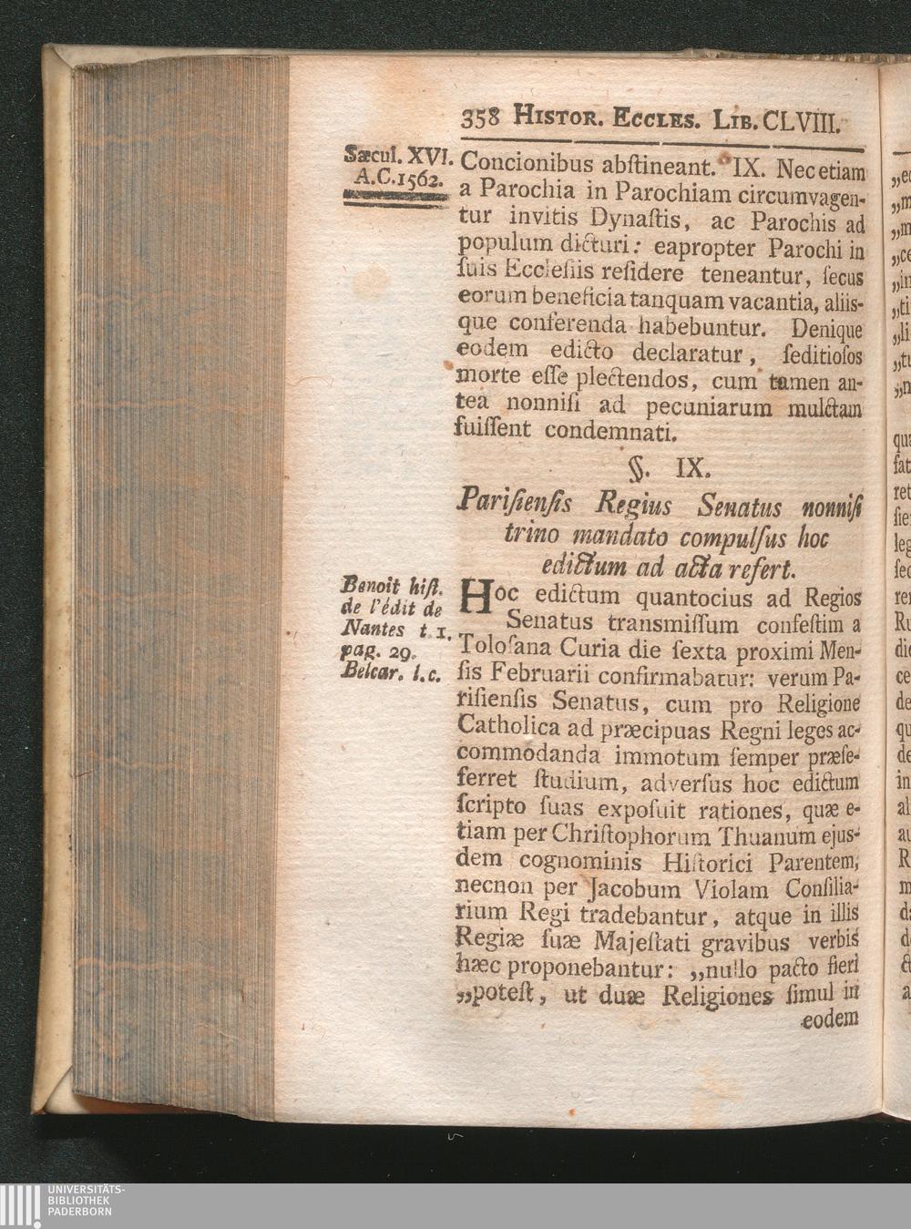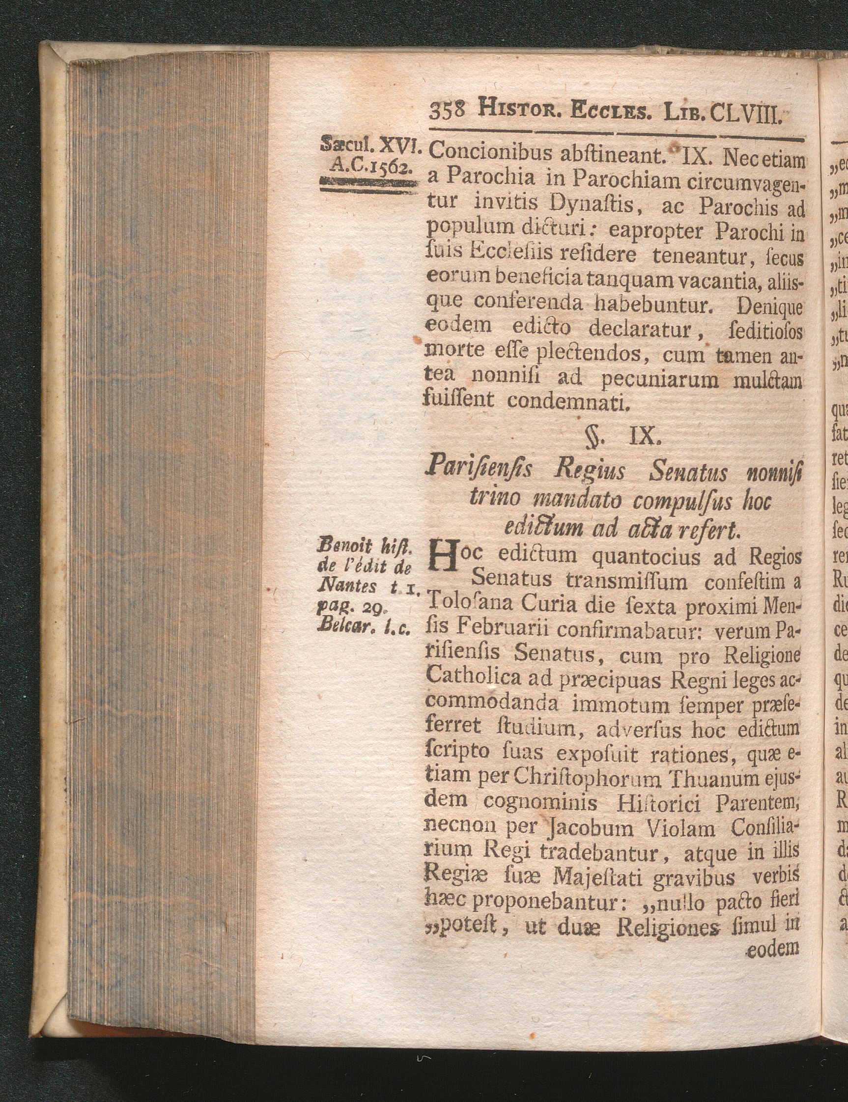 §. 9. Parisiensis Regius Senatus nonnisi trino mandato compulsus hoc edictum ad acta[...]